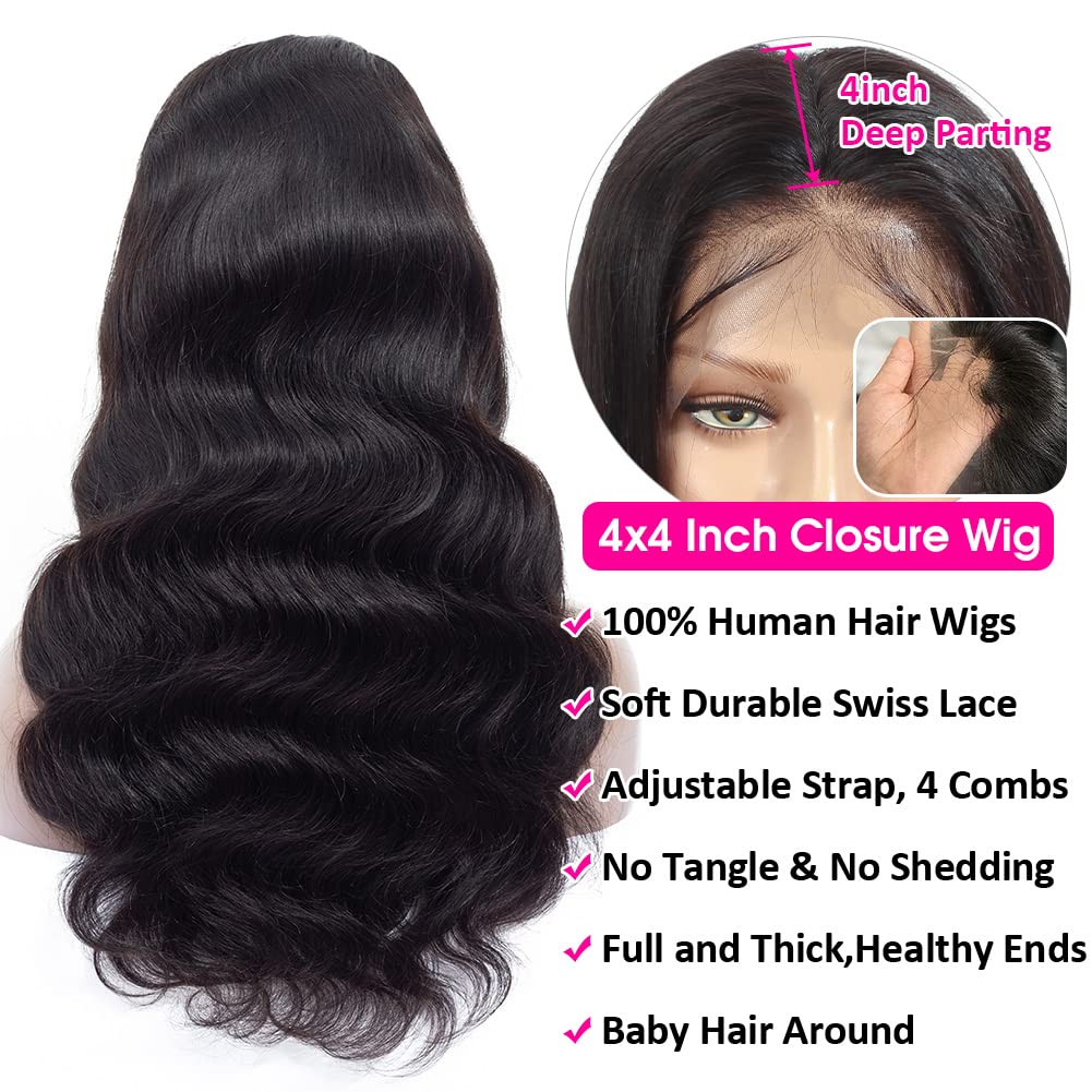 1.Hair Texture:4×4 Body Wave Gluesless Human Hair Wigs for Black Women with Baby Hair Pre Plucked Bleached Knots and Natural Hairline,Virgin Human Hair Brazilian Body Wave Lace Front Wigs Human Hair.