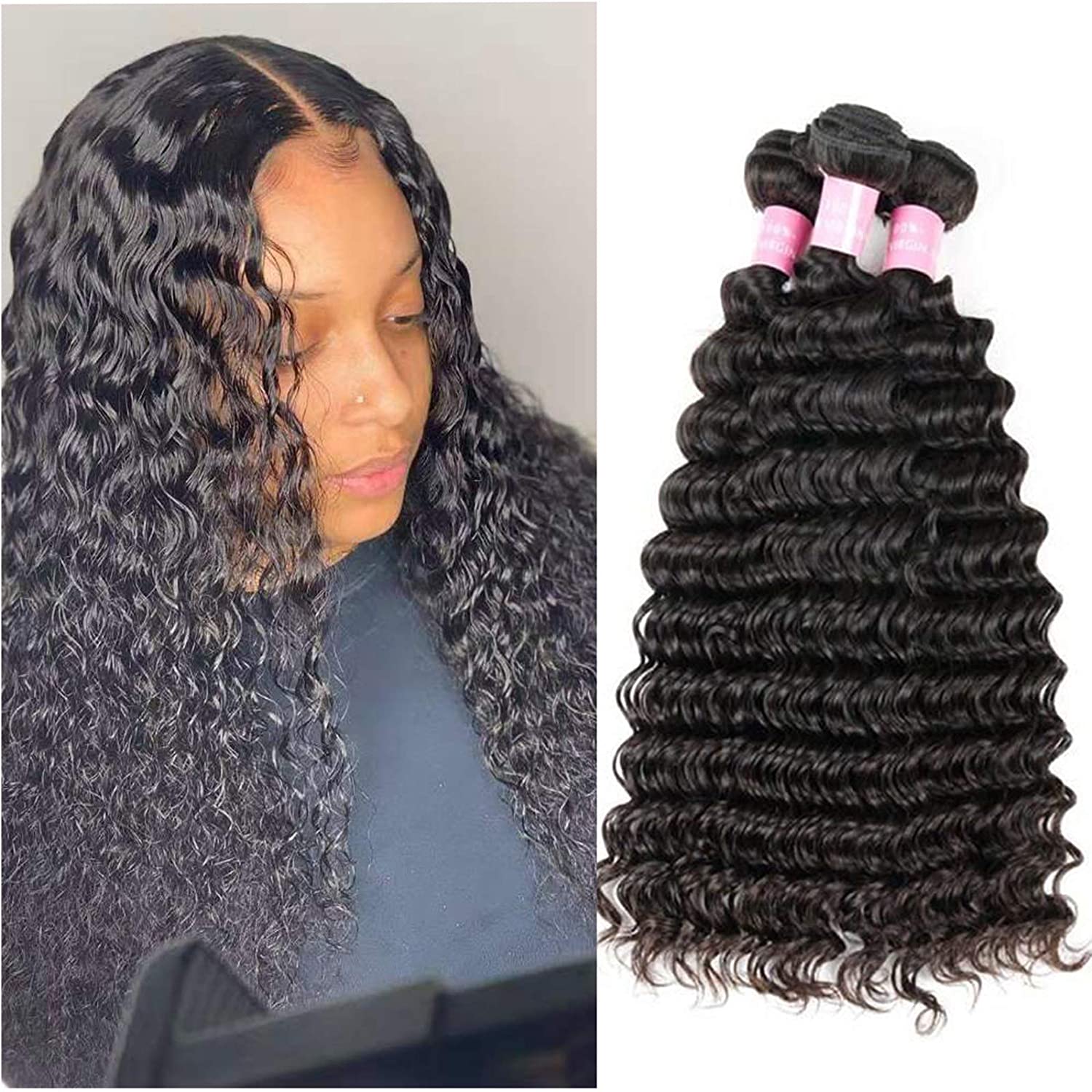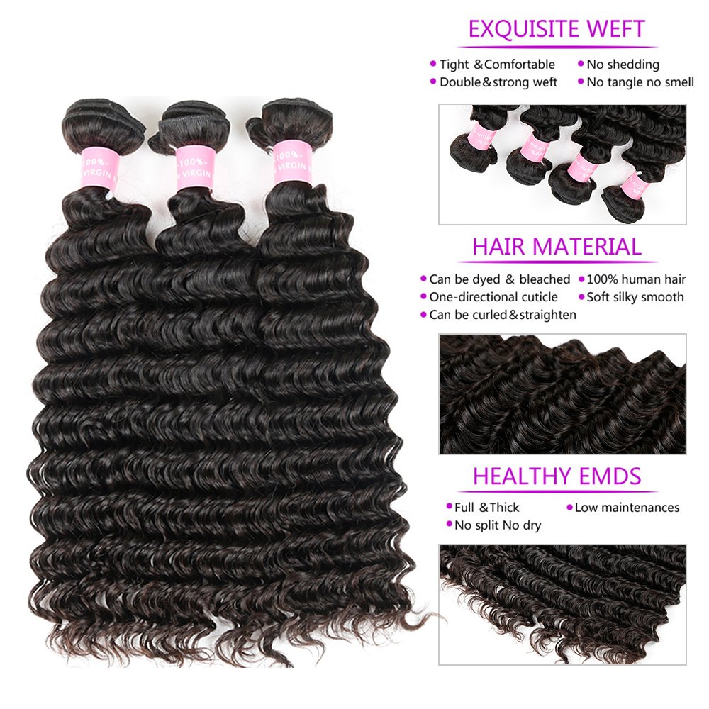 - 🎀Hair Material: 100% Human Hair Weave Grade 9A Peruvian Hair Bundles Deep Curly Weave Hair.