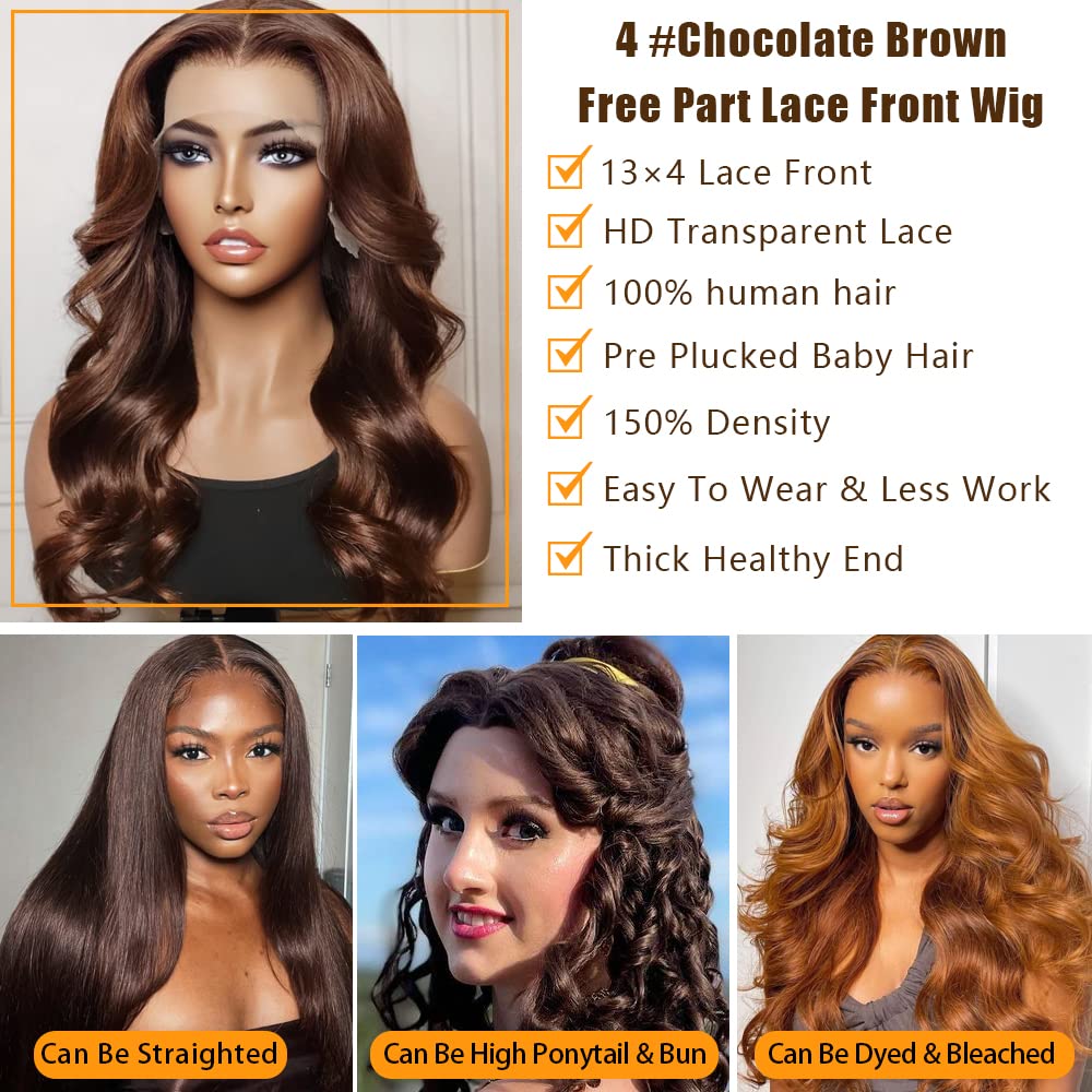 • 💖【Body Wave Brown Wigs Human Hair HD Lace 】:Premium Lace Wigs Brown Human Hair, Transparent Lace Can Melt Into Any Skins, This Lace is More Thin and Undetectable Can Blend with Anyone’s Skin Tone Who Wears the Wig , Comfortable Against Skin. and it’s Beginner Friendly.