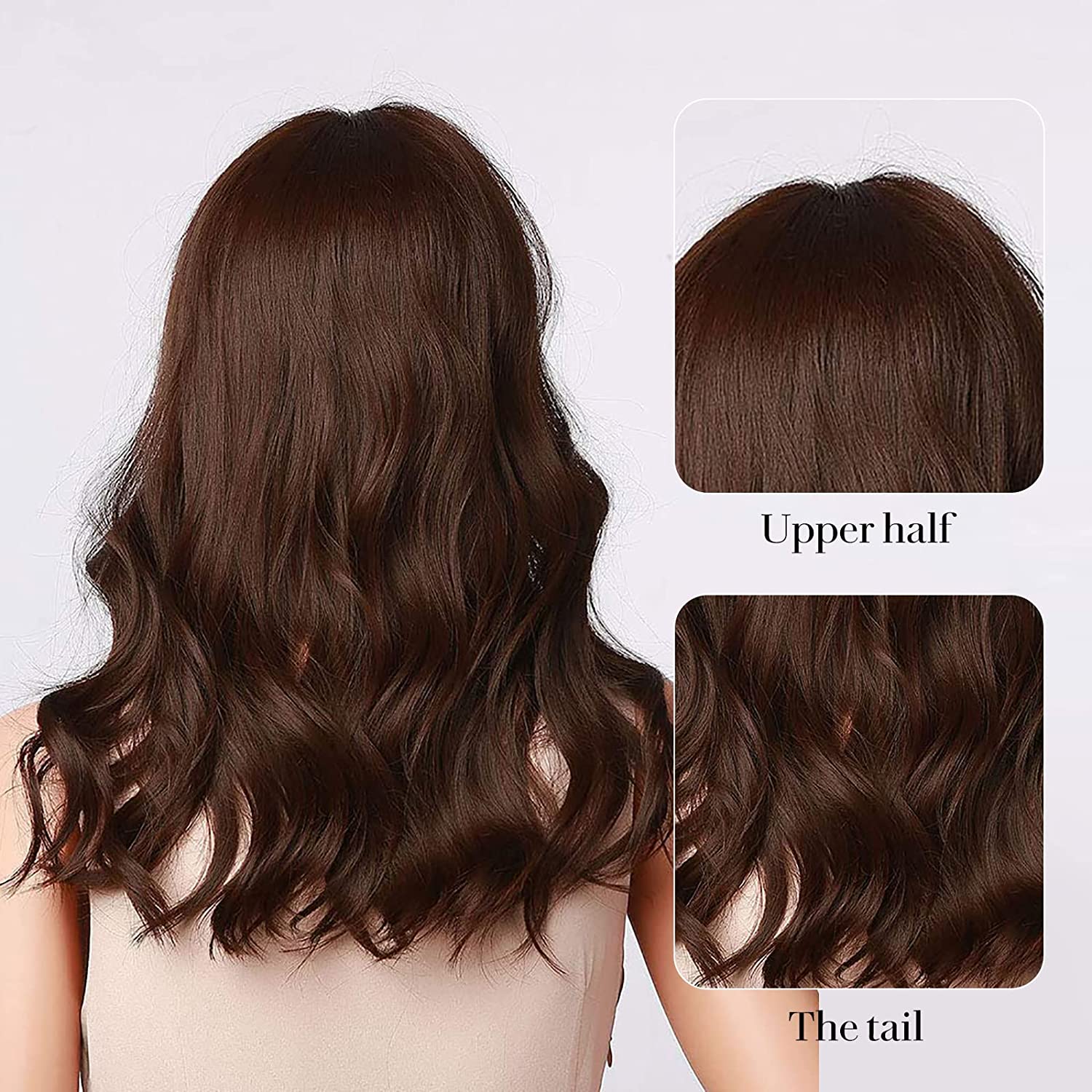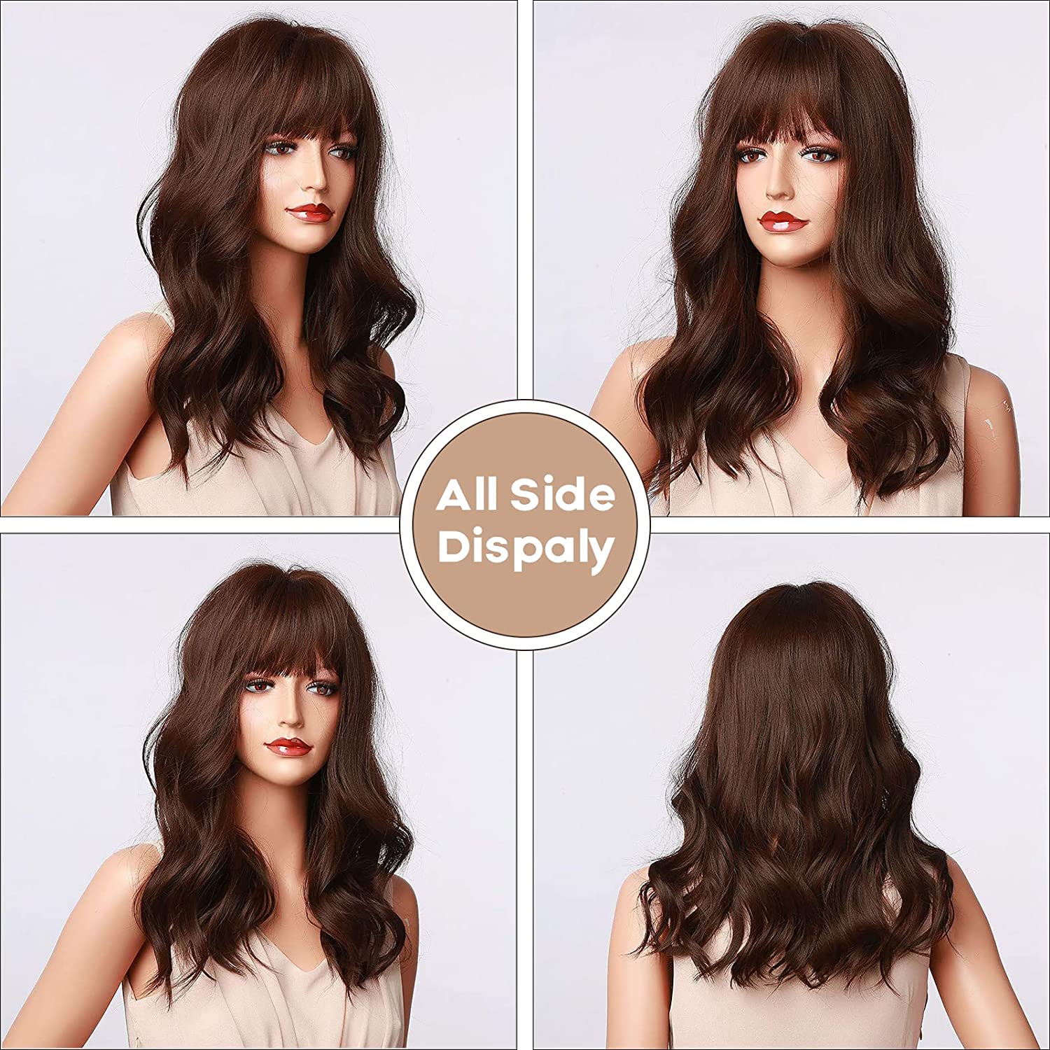 - 🥫1. [Romantic style characteristics]:This Brown with Bangs Shoulder Length Wavy lady’s wig looks natural and soft, skin-friendly, comfortable and breathable, not easy to tangles, not easy to fall off, which can perfect with modern clothing, making you full of charm and becoming the focus of the crowd.