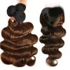 Brown Highlight Body Wave Human Hair 3 Bundles With 4×4 Lace Closure, Brazilian Remy Hair Ombre Human Hair Wavy Weaves Fb30 Color 14 14 14+14 Closure