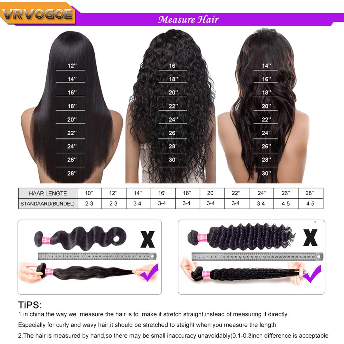 • Hair Weight&Length:8-26 Inch, 100+/-5 g/Bundles, Multiple Choice. For The Length, Stretching The Hair To Be STRAIGHT And Then Measure.