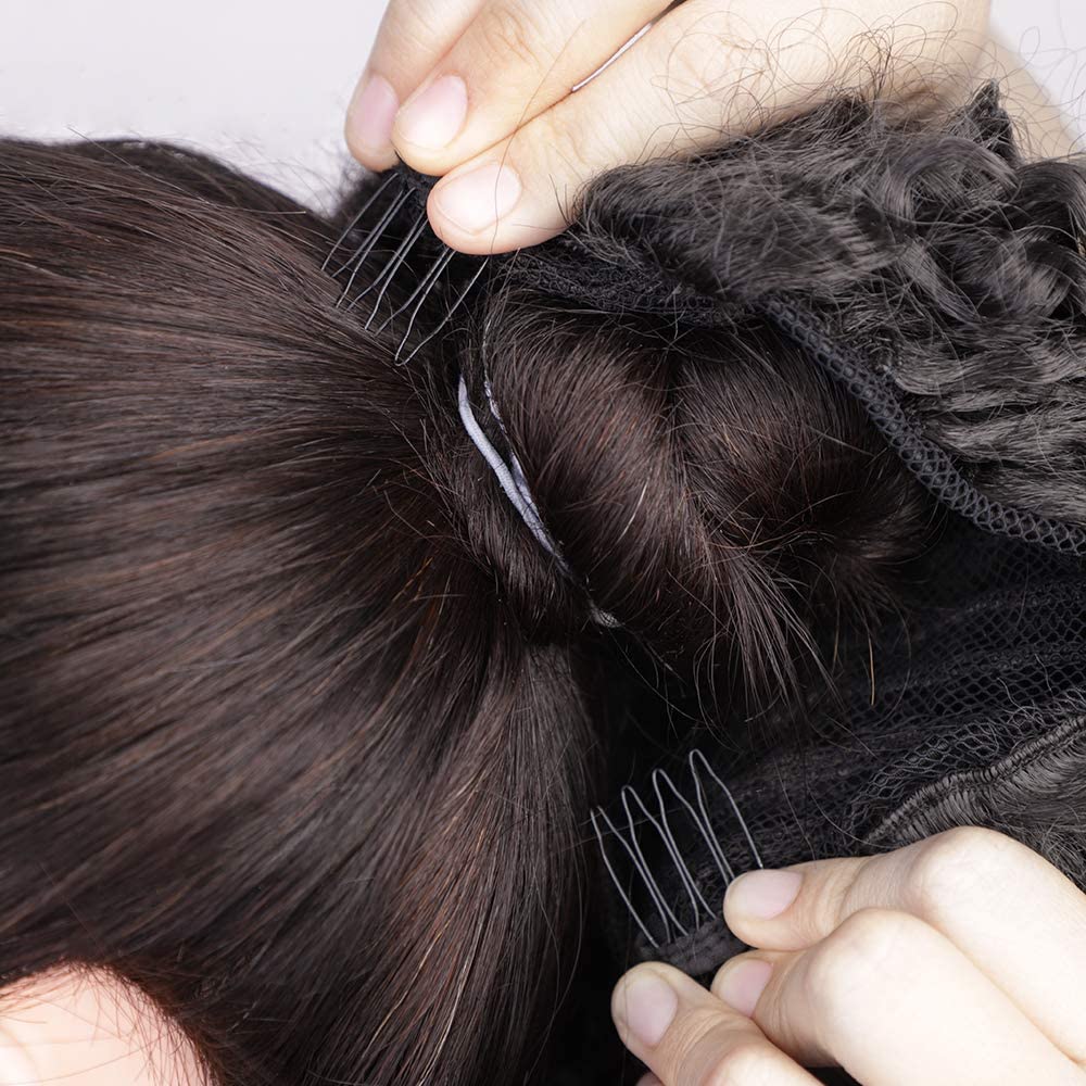 - Advantage of the product: it can be worn in a low or high ponytail as you wish. The hair flower is adjustable with tightening cord and 2 comb inside. It is best to keep the ponytail extension on your hair and it does not slip easily. They will not injure your hair and are easy to wear and remove.