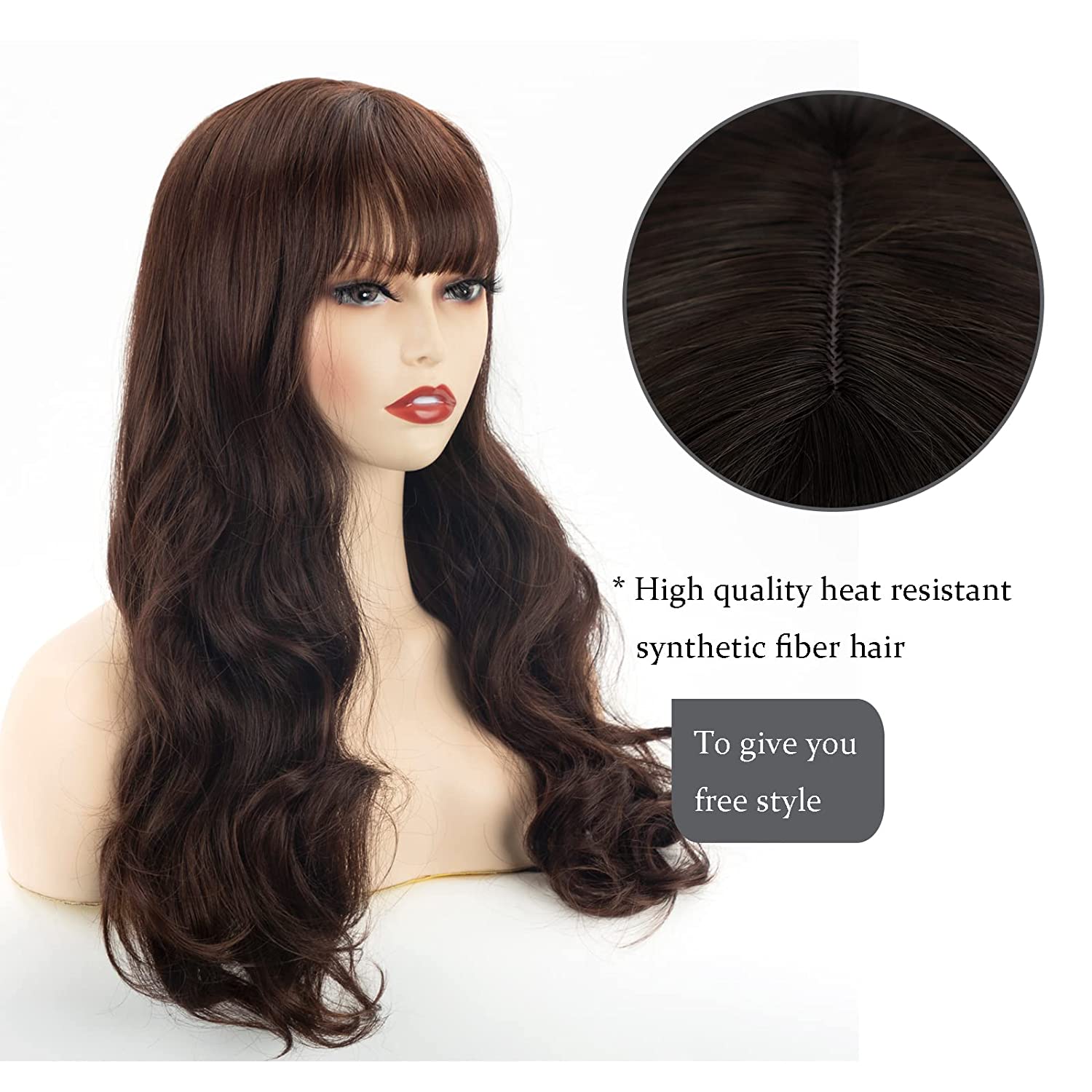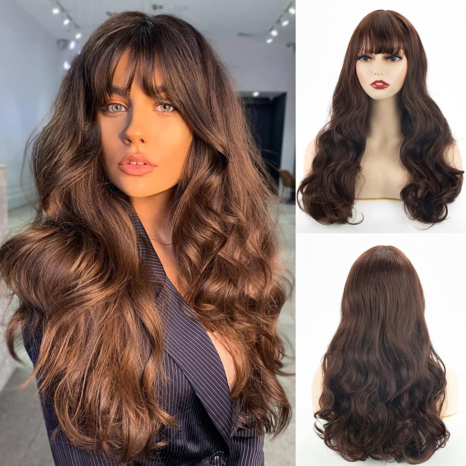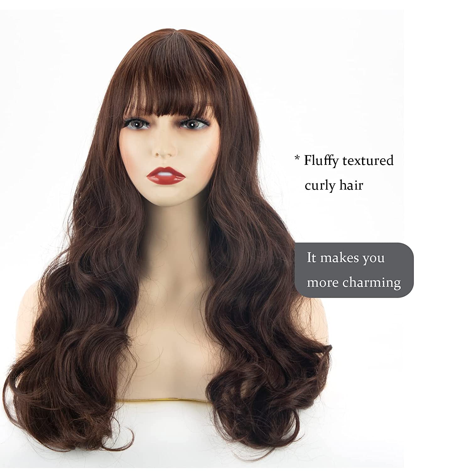 Curly Wavy Wig With Fringe Brown Wig Women Long Wig Heat Resistant Synthetic Hair Wig For Cosplay And Daily Use (60 Cm Brown)