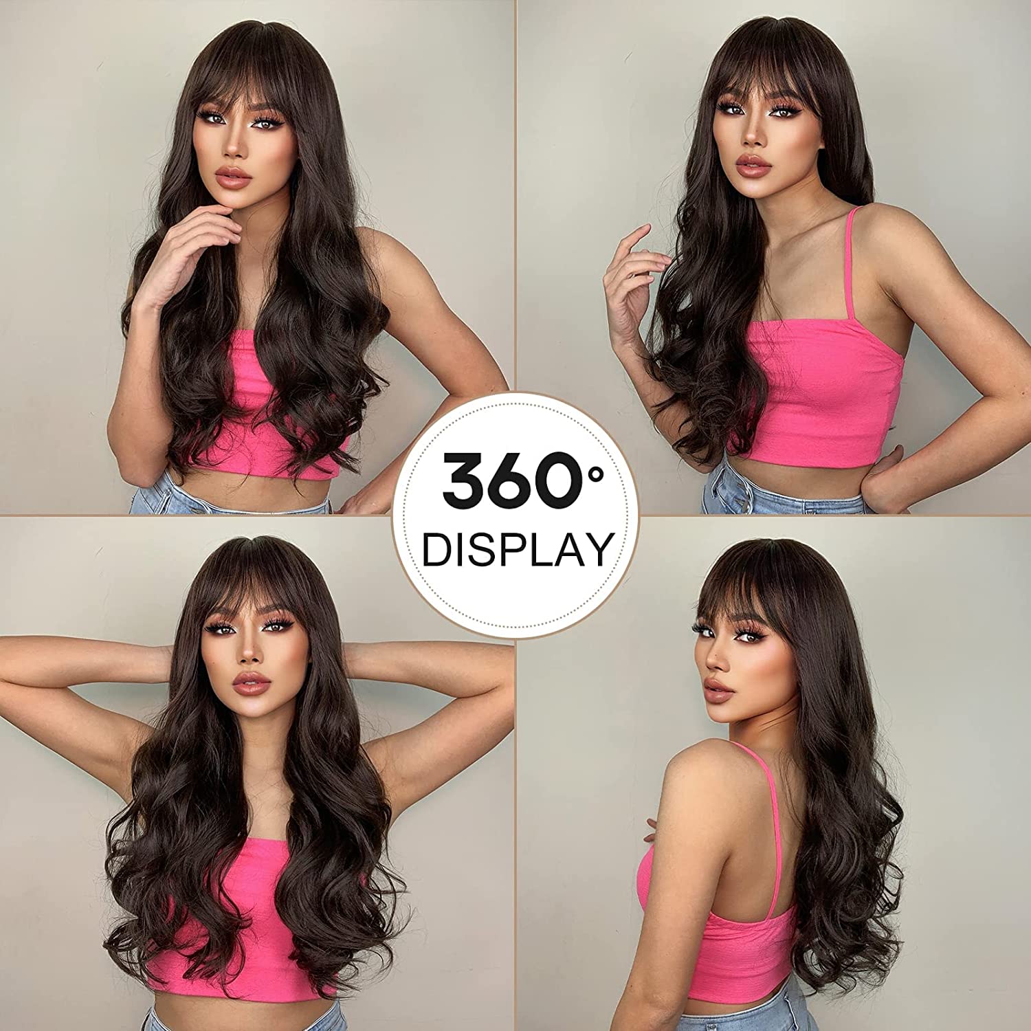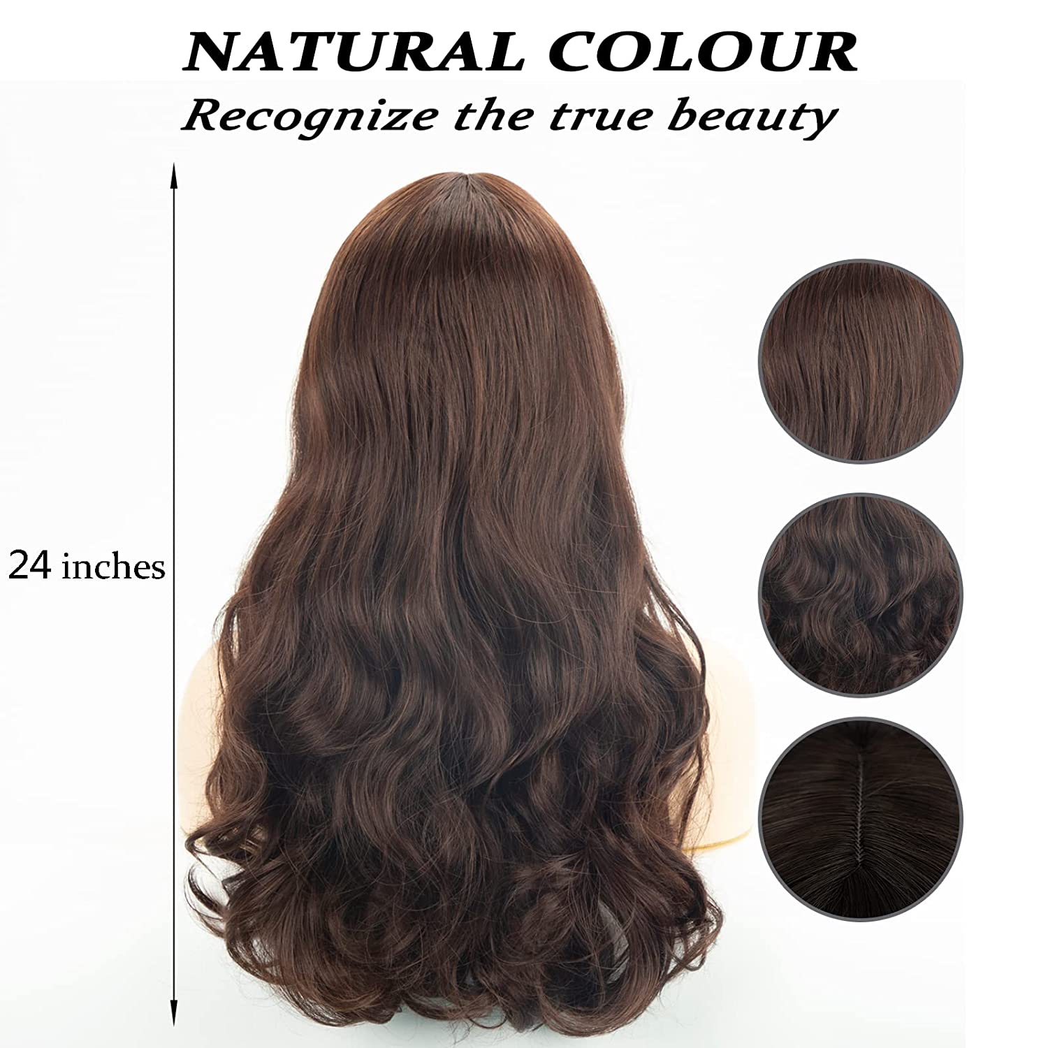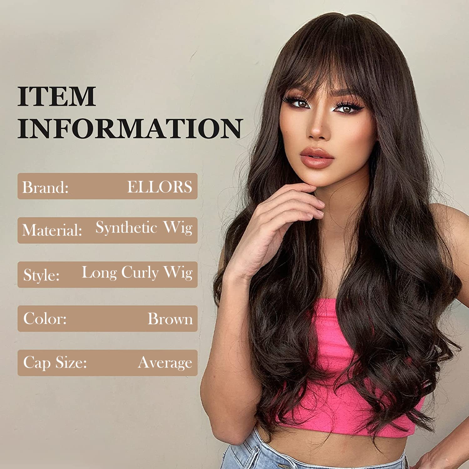 Curly Wavy Wig With Fringe Brown Wig Women Long Wig Heat Resistant Synthetic Hair Wig For Cosplay And Daily Use (60 Cm Brown)