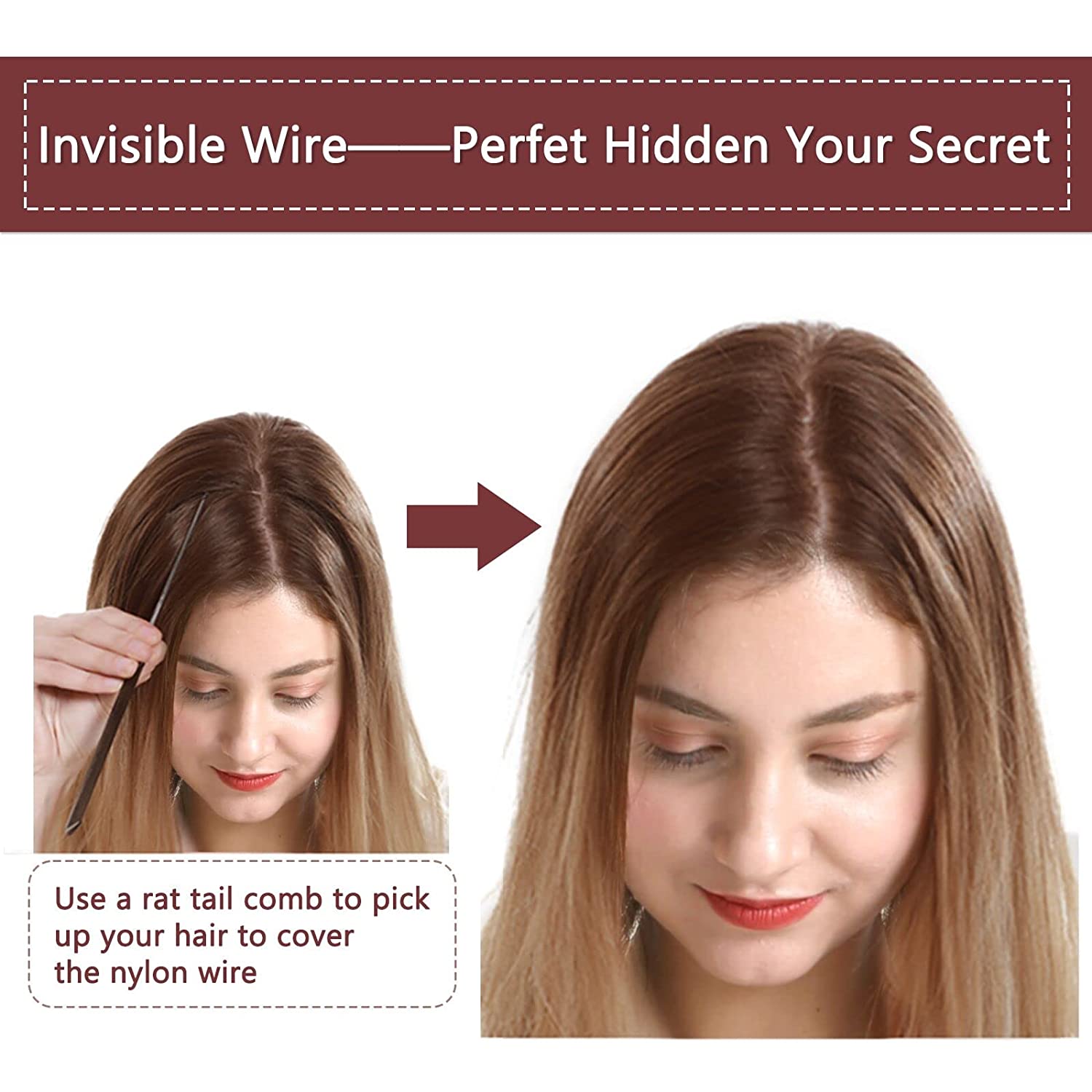 - Worth Trying – Different from the traditional hair extension, the breakthrough hair extensions with fish line, don’t have glue, tape, chemicals or other heavier application methods, creating healthy and seamless way of wearing. Take care of your scalp more.