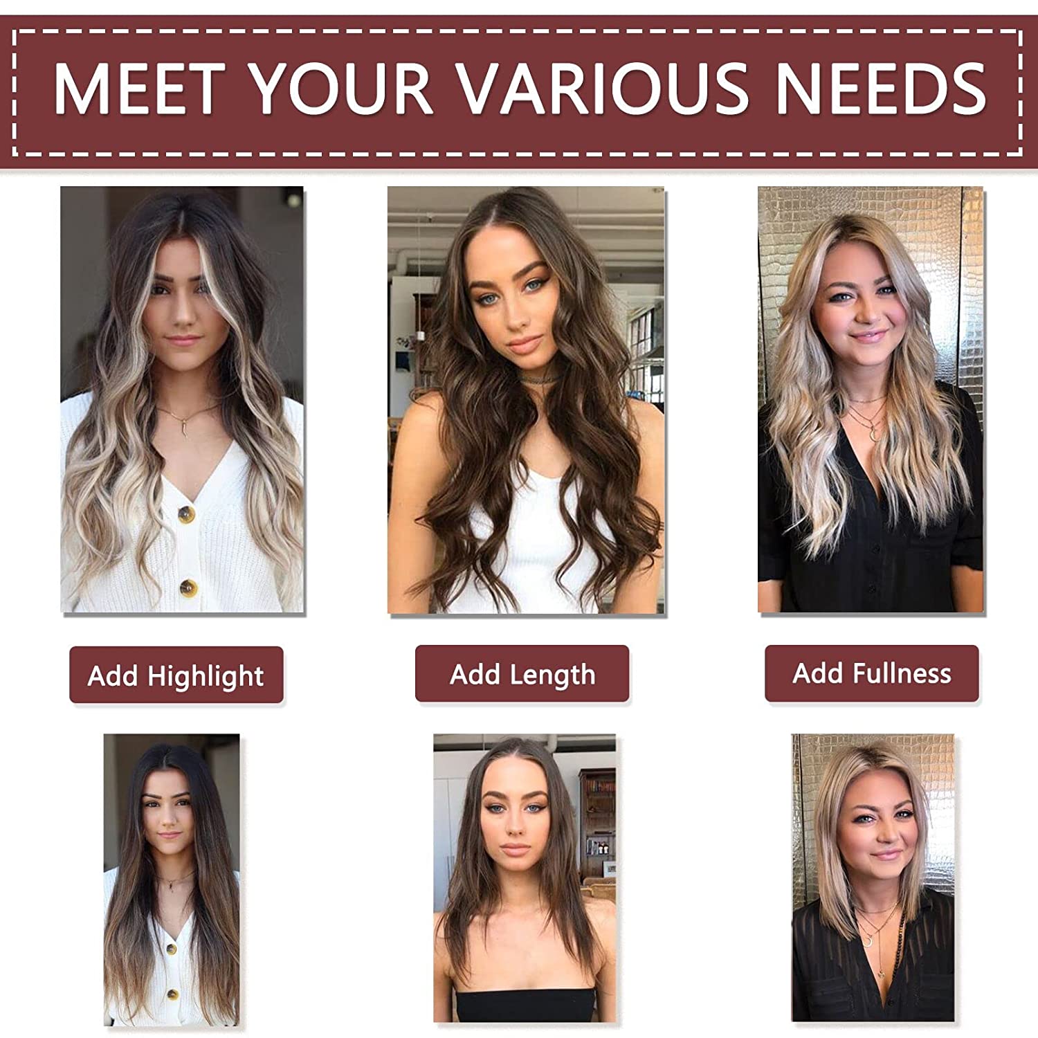 - “A” Class Hair Texture – The wire hair extension is ultimate softness, natural curl texture, which looks and feels just like real human hair. Minimal shedding and knotting, a little care solution can make it smooth. Perfect for women/girls to add fullness/length/stylr to hair.