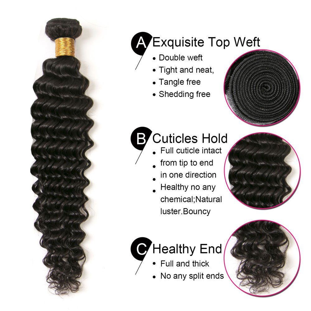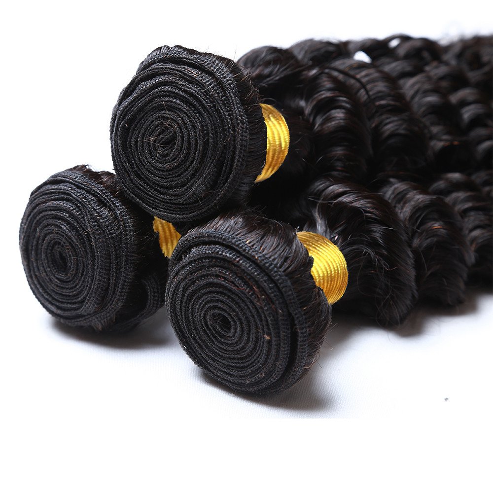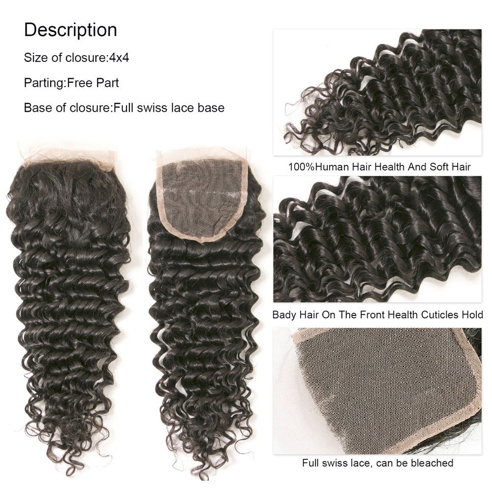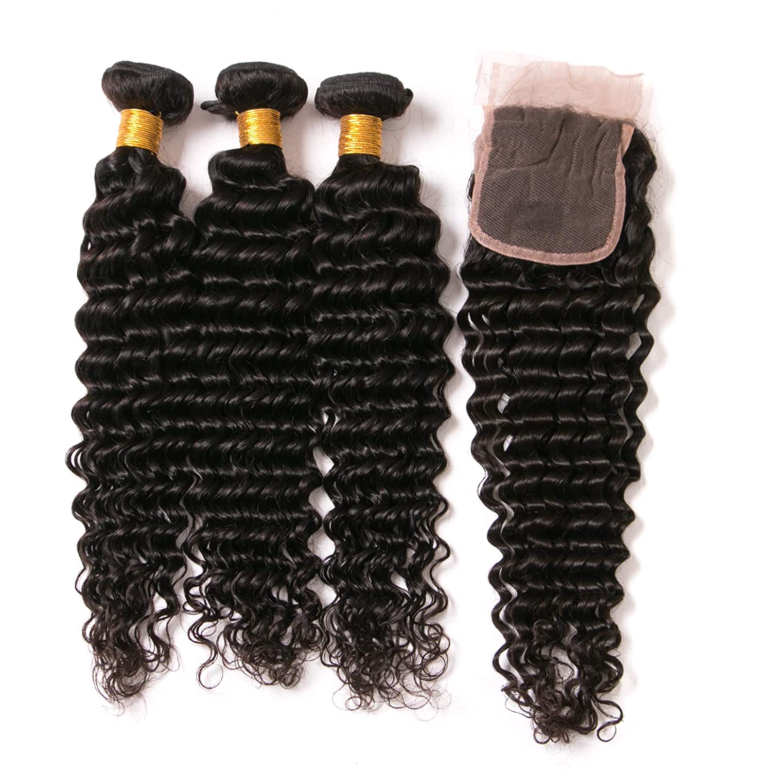 Dai Weier Deep Wave Weave 3 Bundles With Closure 9a Peruvian Virgin Hair Bundles With Closure Deep Wave Virgin Hair Weft For Women 18 20 22 With 16 Inch Closure Free Part
