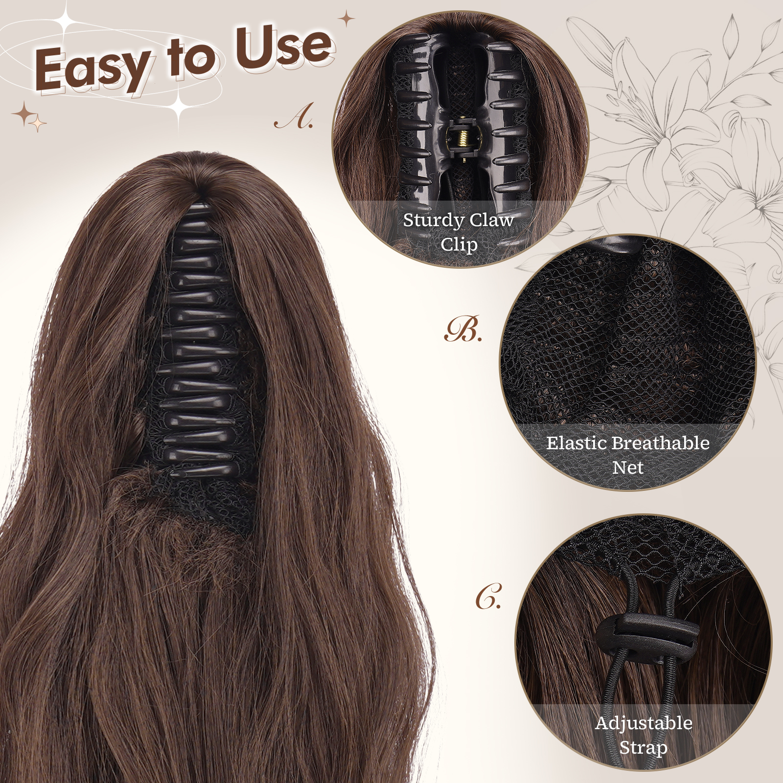 - Easy to Use: The only thing you need to do before wearing is to tie your own hair into a bun or small ponytail. Then open the claw clip and attach the ponytail extension to your hair, an attractive wavy ponytail hairstyle is immediately visible. It’s perfect for changing your hair look in seconds. Easily create a more free and casual hairstyle