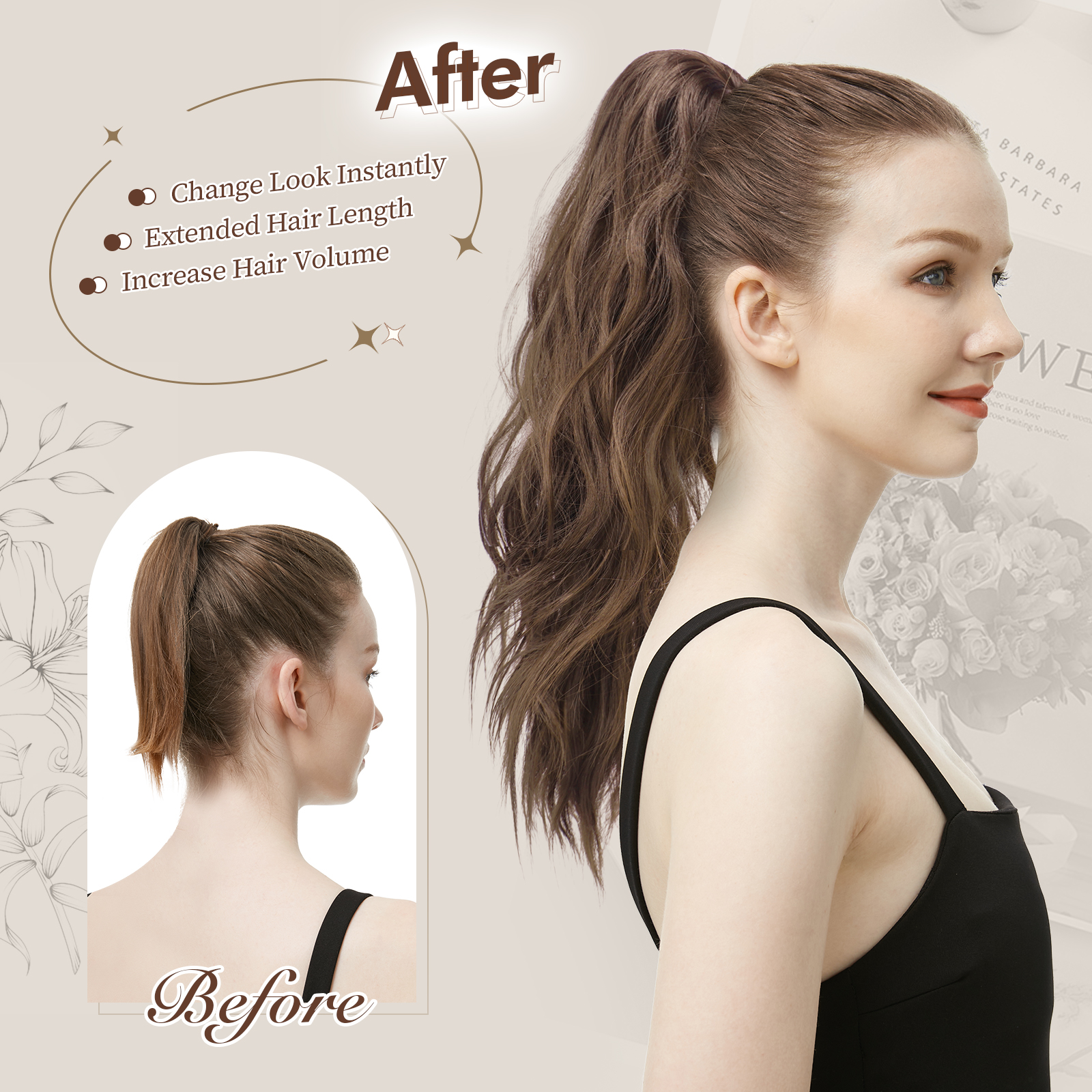 - Soft & Tangel-free Hair: High quality heat resistant synthetic fiber, which is natural and blends in well with your own hair. Less tangle, less shedding and less false shine. We’ve given the ponytail a more subtle curl than ever before to help you stand out of all the others