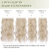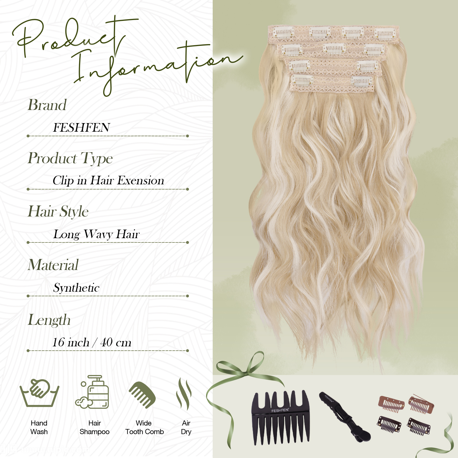 FESHFEN Clip in Hair Extensions 16″ 150g 4PCs Long Wavy Curly Thick Hairpieces Full Head Natural Synthetic Extension for Women