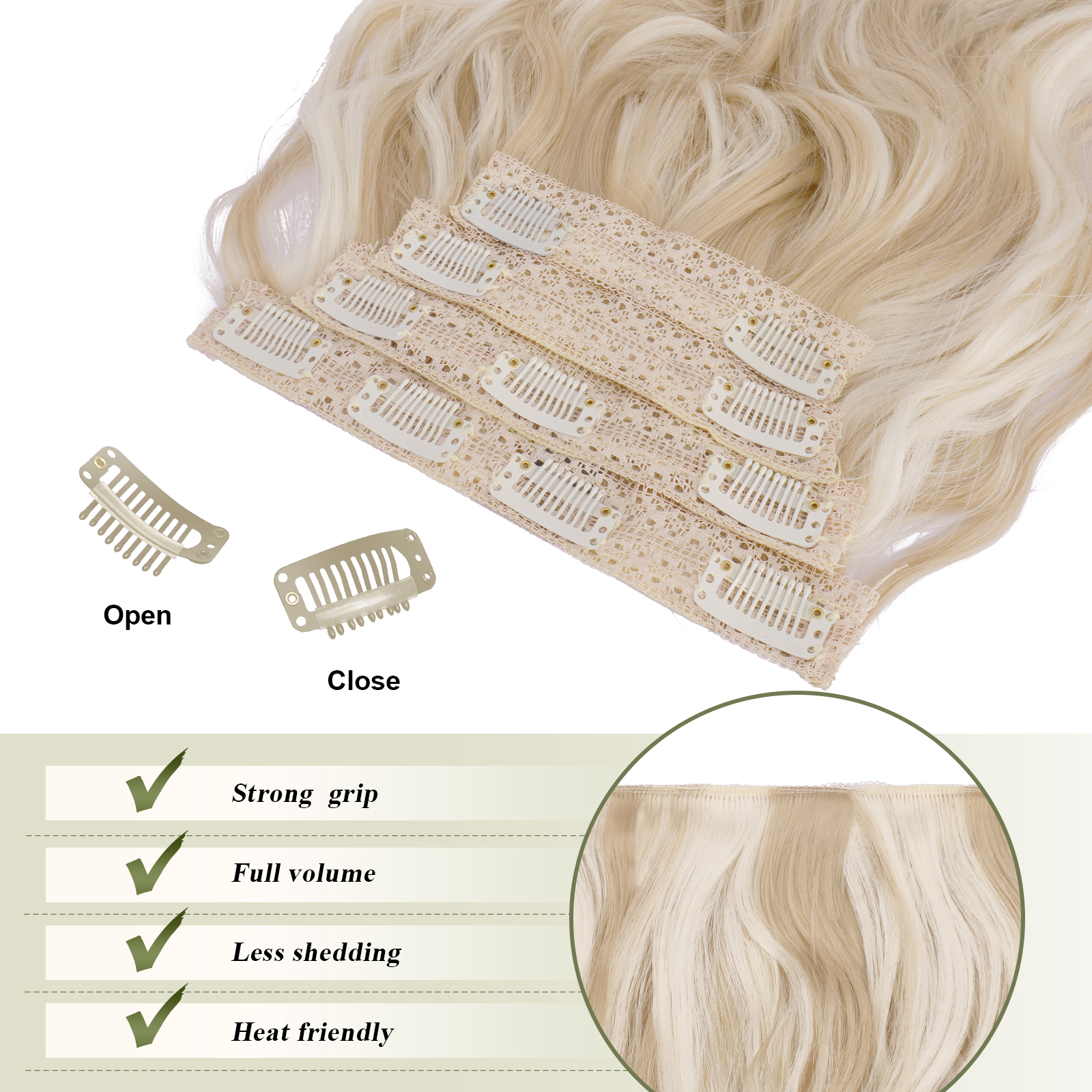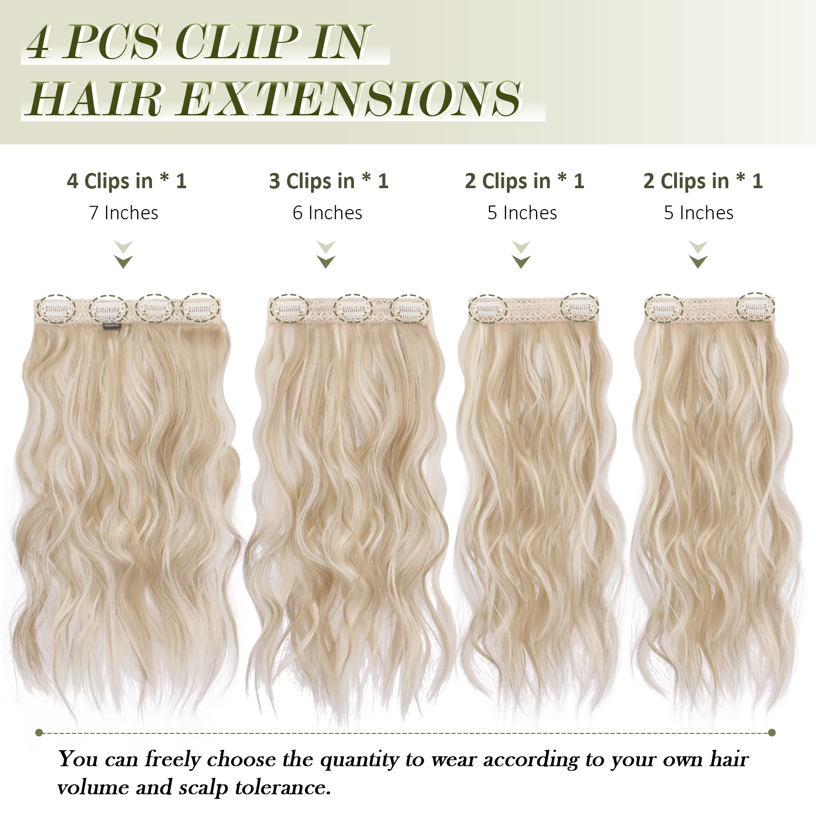 - Package Contents: 4PCS clip in hair extensions of 16 inches 150g in Totall. Each package includes: 1 piece of 7 inches wide weft with 4 clips; 1 piece of 6 inches wide weft with 3 clips; 2 pieces of 5 inches wide weft with 2 clips. You can choose the number of pieces to wear according to your needs.