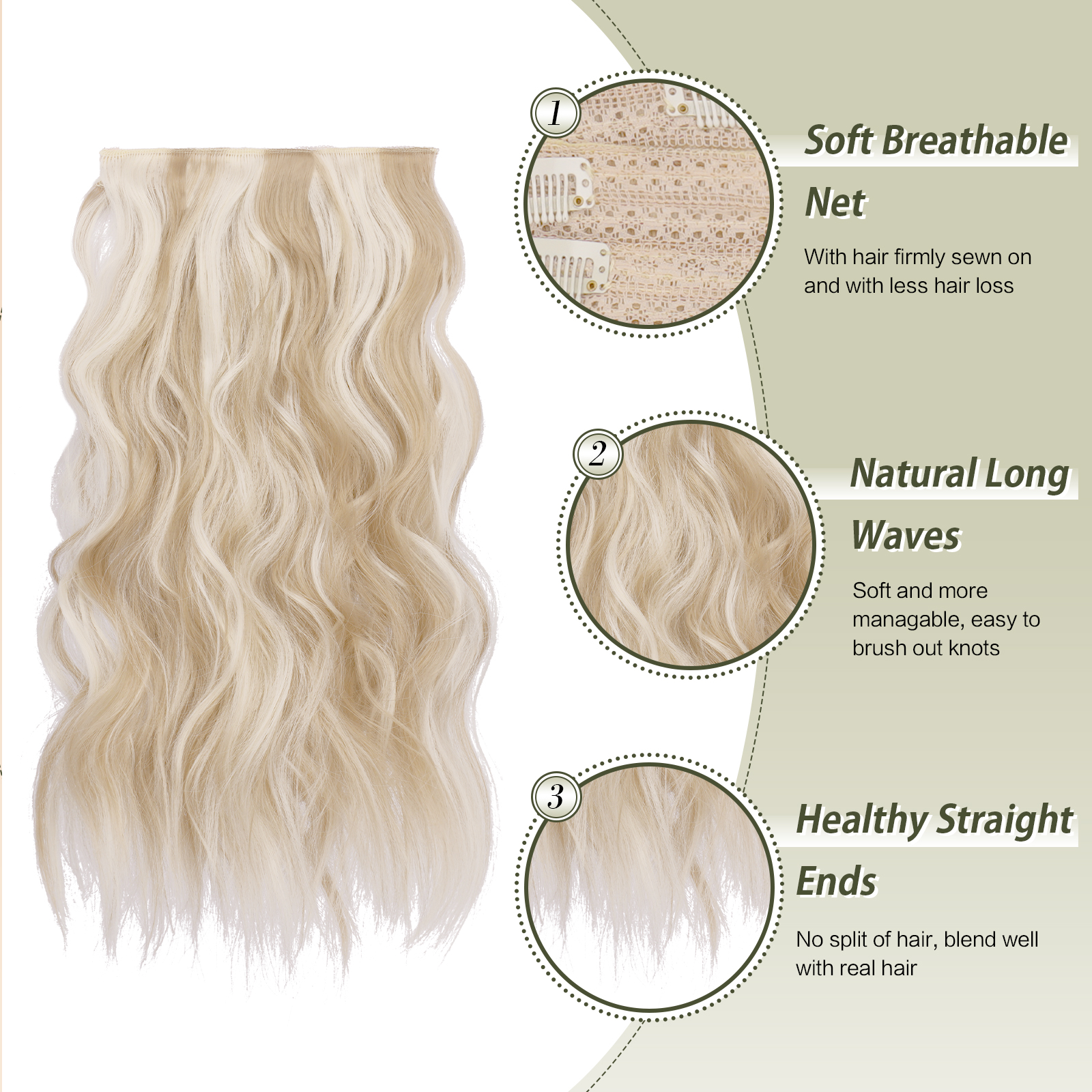 - Advantages of 4PCS Clip in Extensions: Compared to traditional hair extensions, 4pcs clip in hair extensions can provide you with more vloume with no glue, no tape, causing no damage to your hair and scalp and with less shedding. They can be cut, permed and washed. You don’t need to rush to the Salon for a party, or be upset in an overslept morning; just spend 5 minutes wearing these hair pieces, then a charming and elegant look will appear.