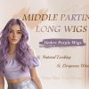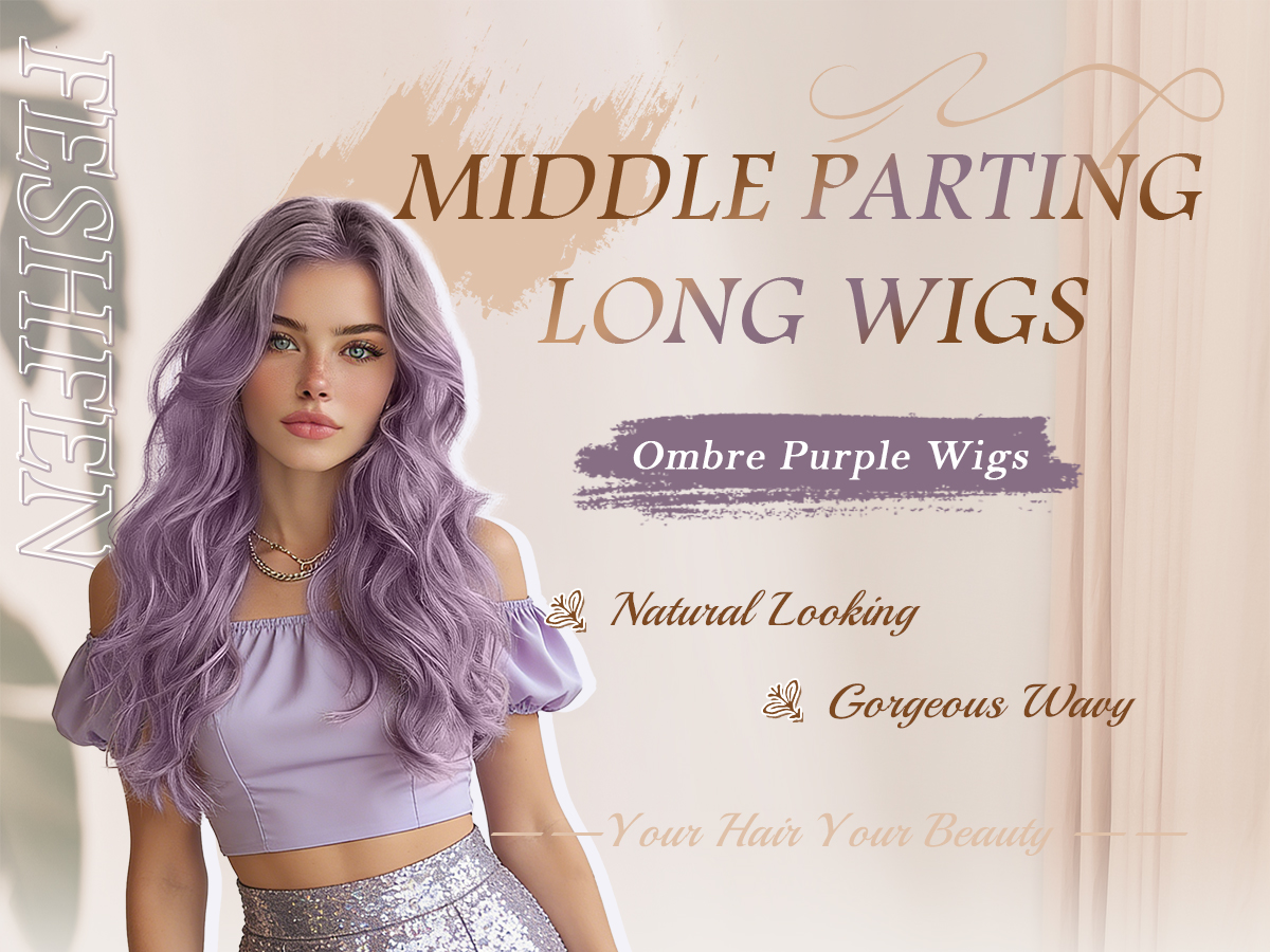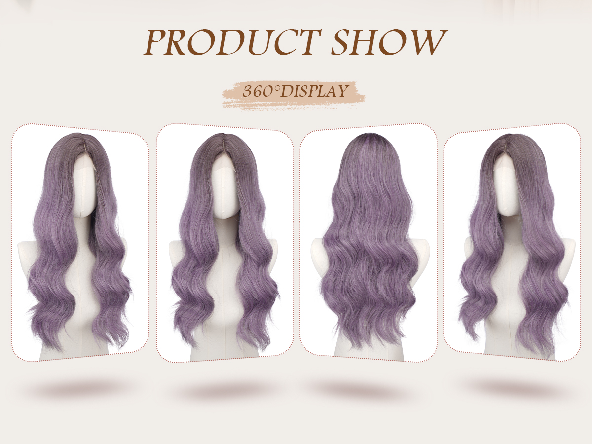 FESHFEN Long Ombre Purple Wigs for Women, 24 inch Lace Front Hairline Middle Parting Synthetic Wavy Wig for Daily Party