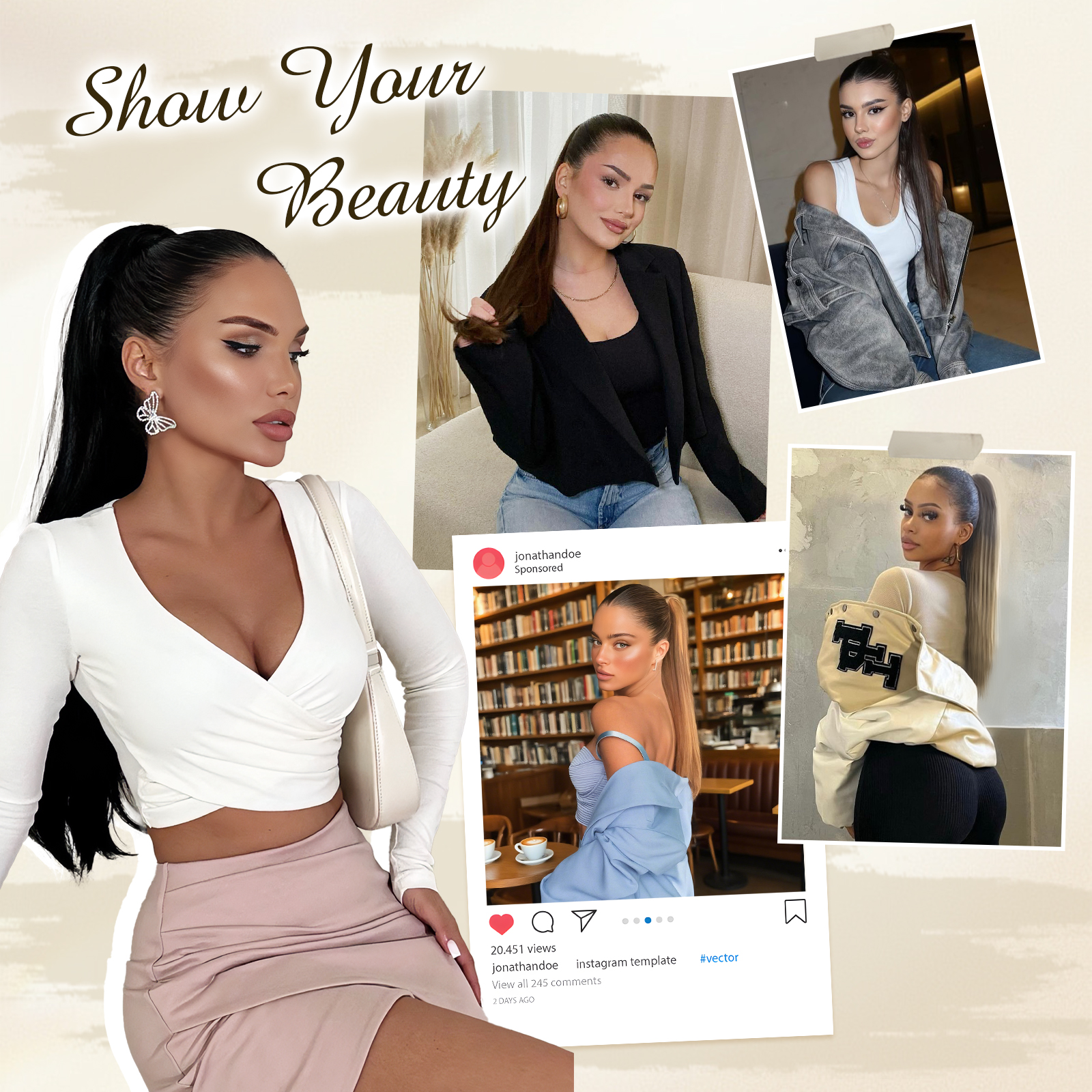 Natural-Looking: A wide range of popular colors is available to give you a hair breakthrough at an affordable price. Long, smooth ponytails are a popular, simple, and eye-catching look for women of all ages.