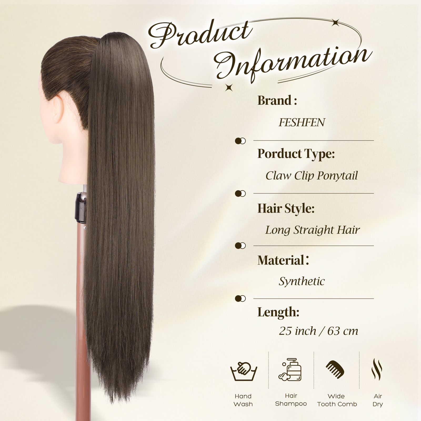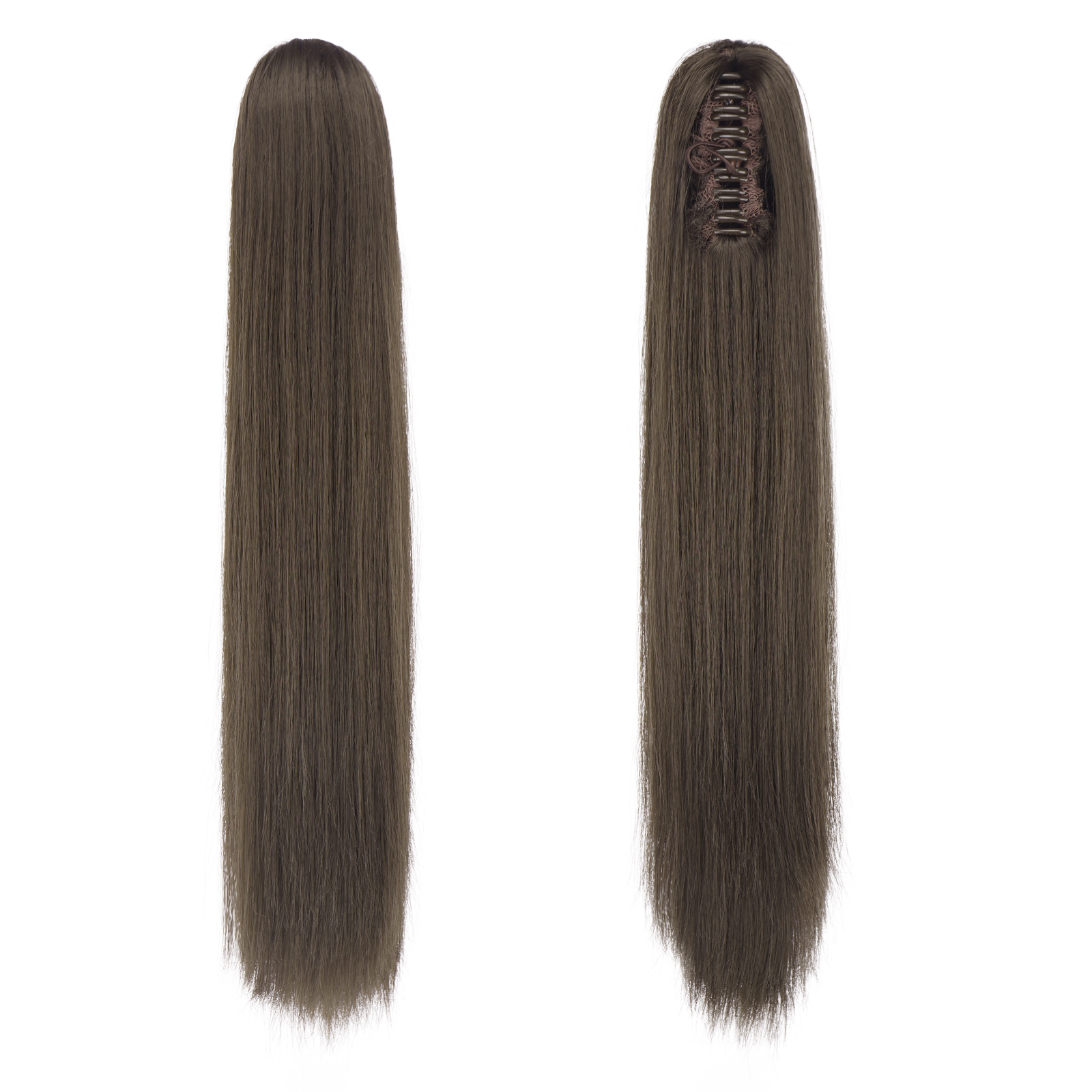 FESHFEN Long Ponytail Hairpiece – 25 Inch Straight Brown Braid Extensions with Clip in Synthetic Hair Extensions Claw Clip in Ponytail Hair Extensions for Women