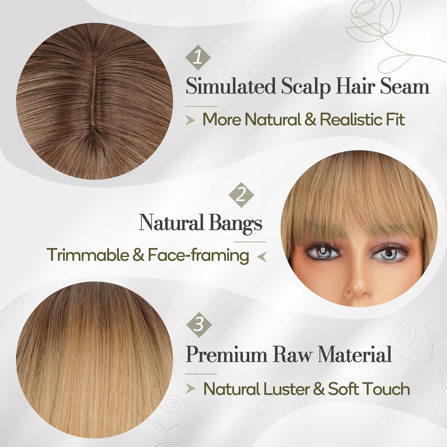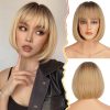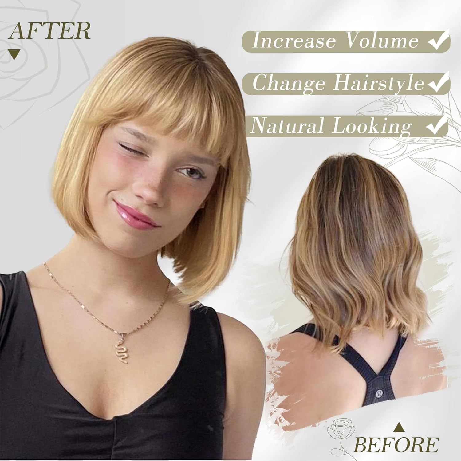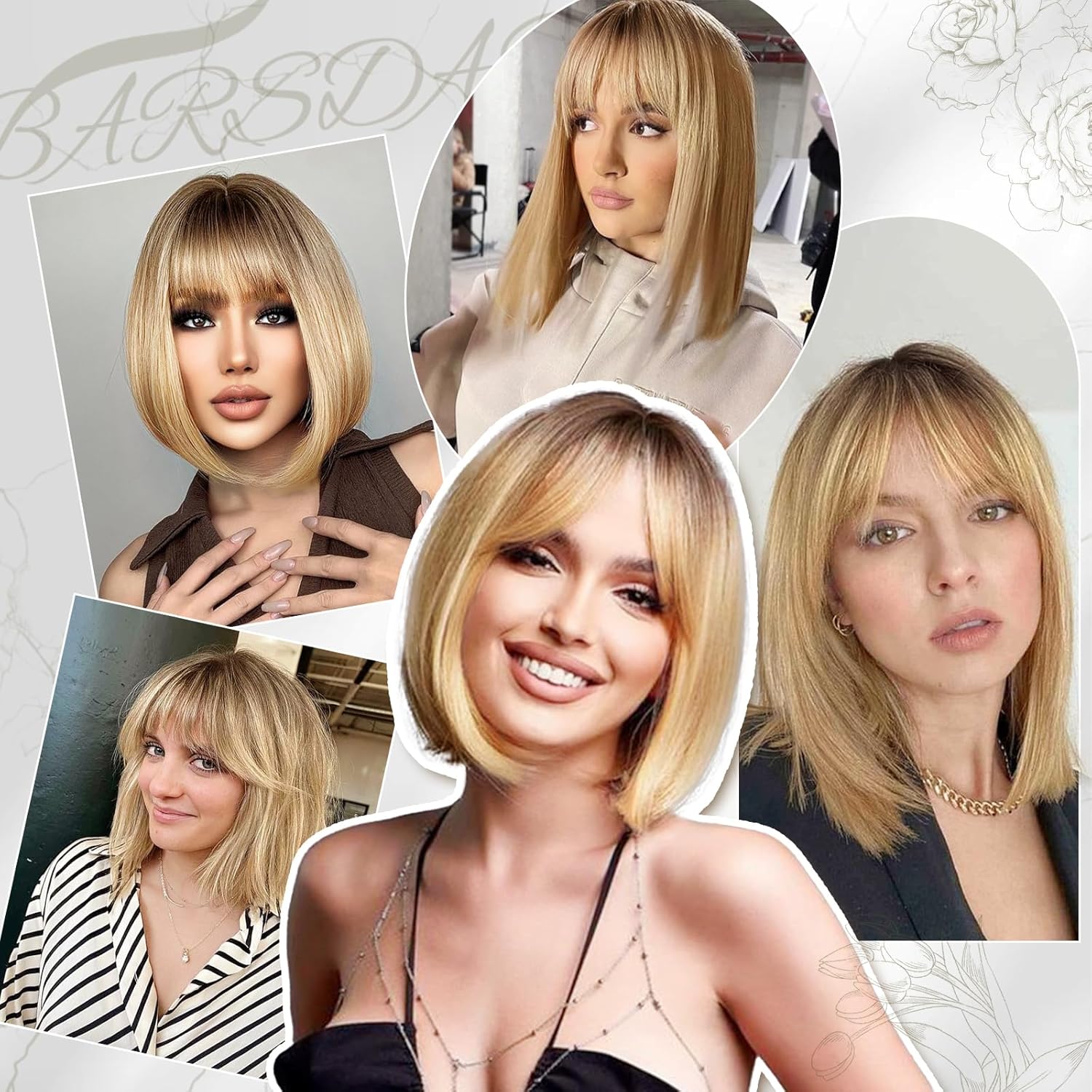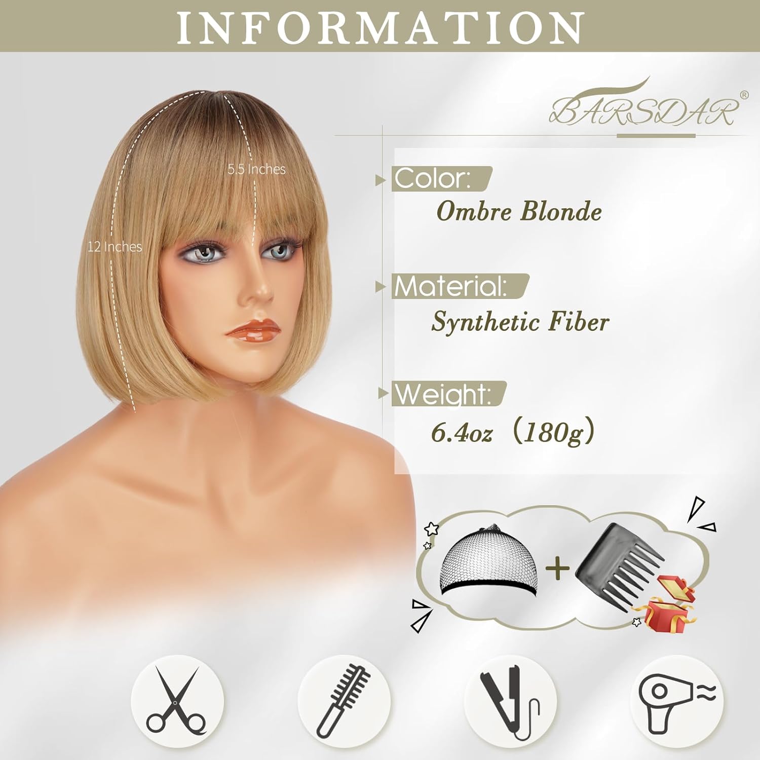 - 【Stylish Look】 This sleek Ombre Blonde wig showcases a classic bob haircut with framing bangs. Its 12-inch length makes it an ideal choice for those seeking a short, straight bob wig with bangs. Crafted to provide a gorgeous appearance and guarantee a stunning natural look.