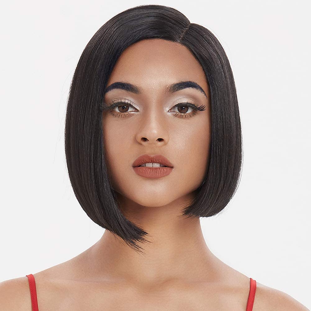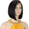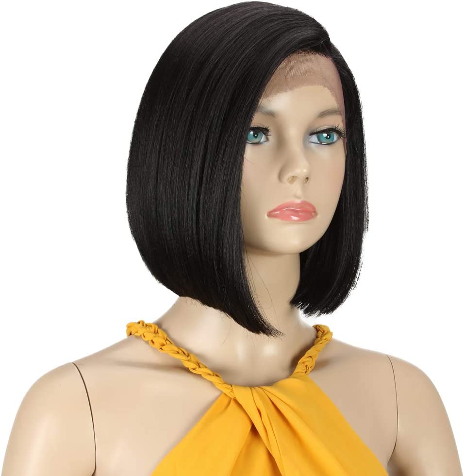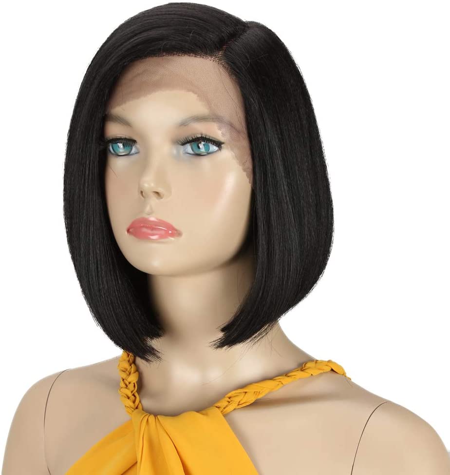 Front wigs in lace for black women bob wigs for white synthetic hair 24 cm120 g natural tip in Swiss lace with heat resistant fibers tied in half (24 cm, 1b)