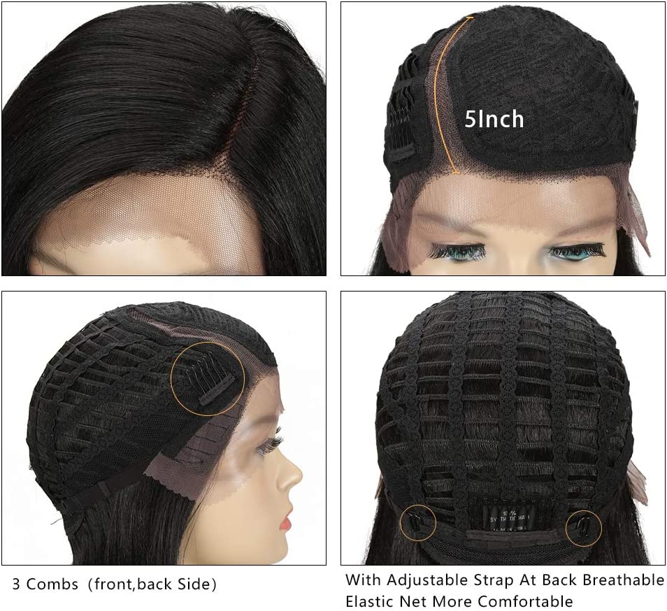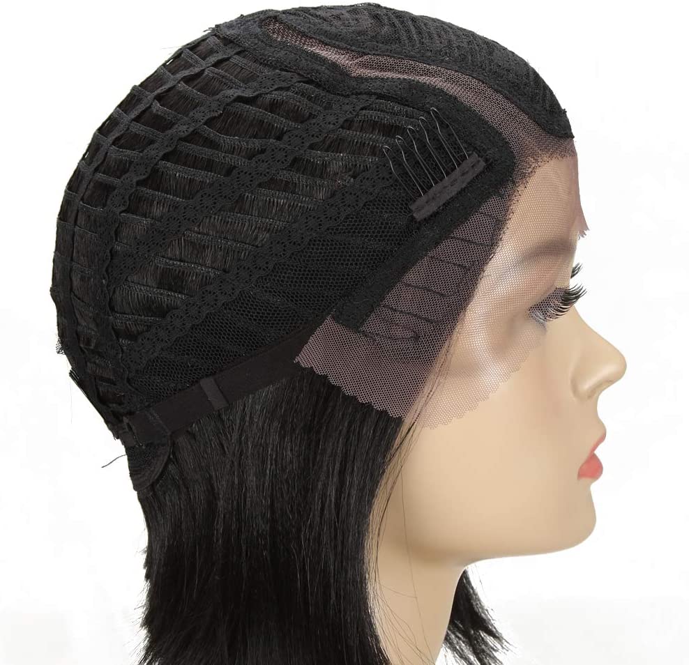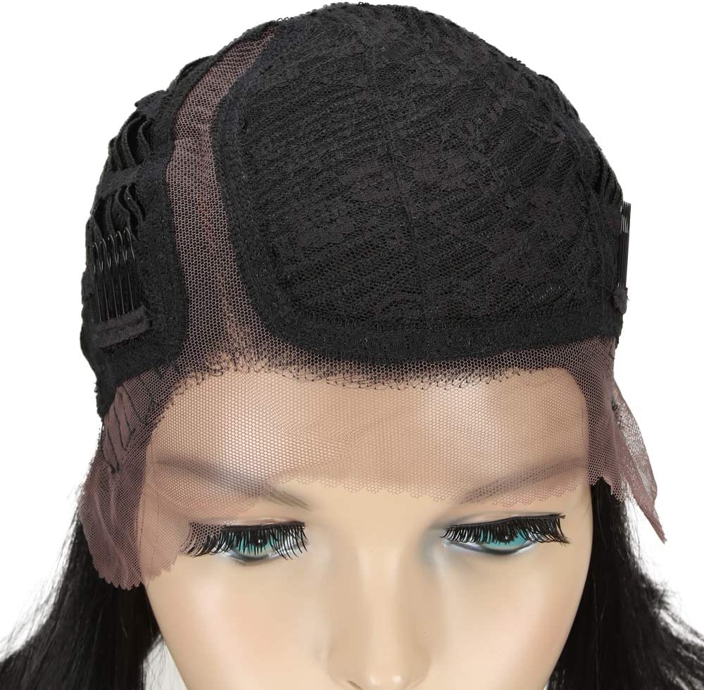 - 〖Design:〗 front lace wig high density, tied in half hand, breathable pink net, left side part, natural law, length 24 cm, weight 120 g. Hooded with adjustable straps and 3 hooks, regulate the hooks to adapt them to your head, if it is too small for you, tell us only how big you need, we could provide a larger one without additional costs.