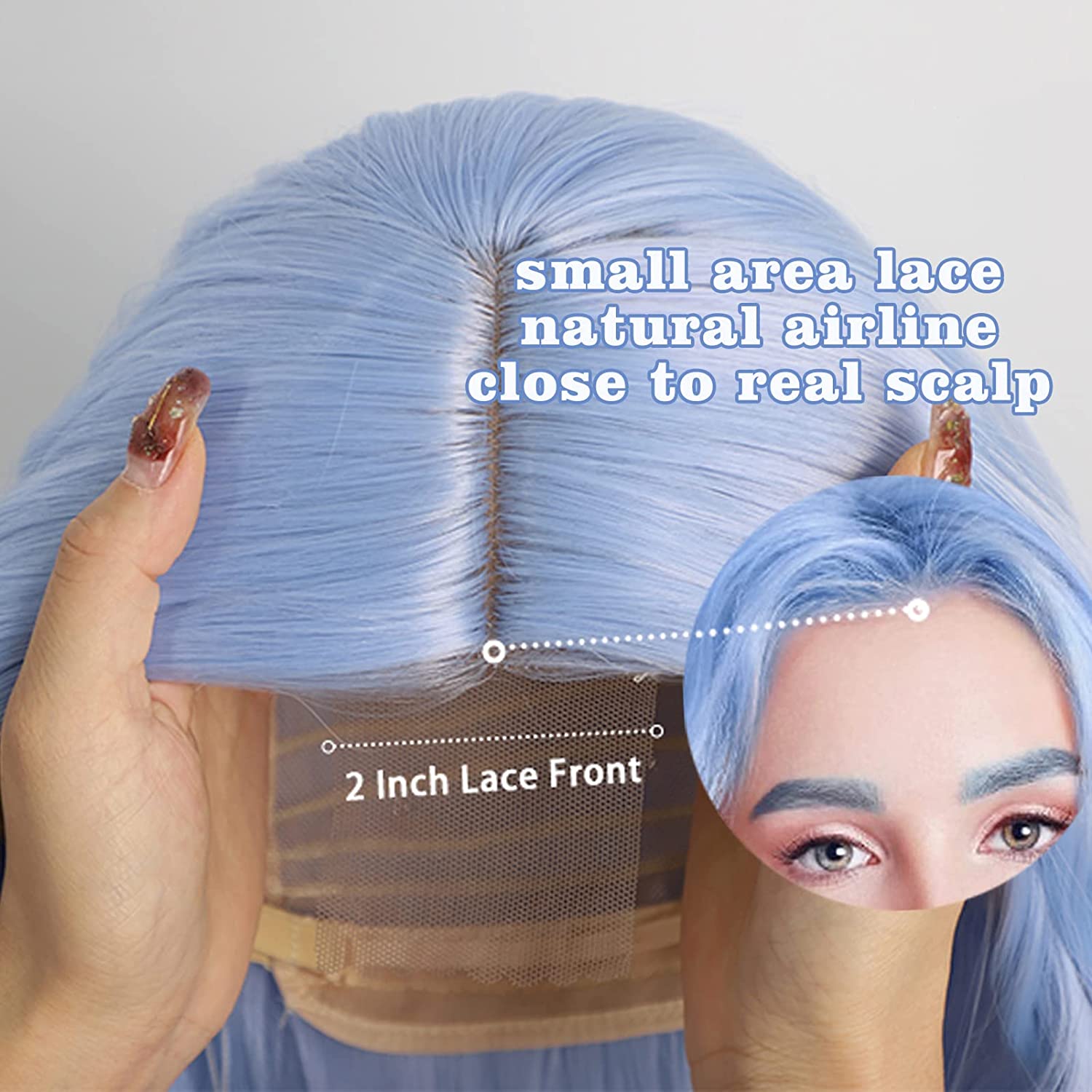• ❥Natural details:Different from similar women’s wigs on the market: The wavy bob blue wig has made a piece of lace on the forehead, which will blend with your makeup, it will make your hairline look more natural. You will get a lot of compliments.