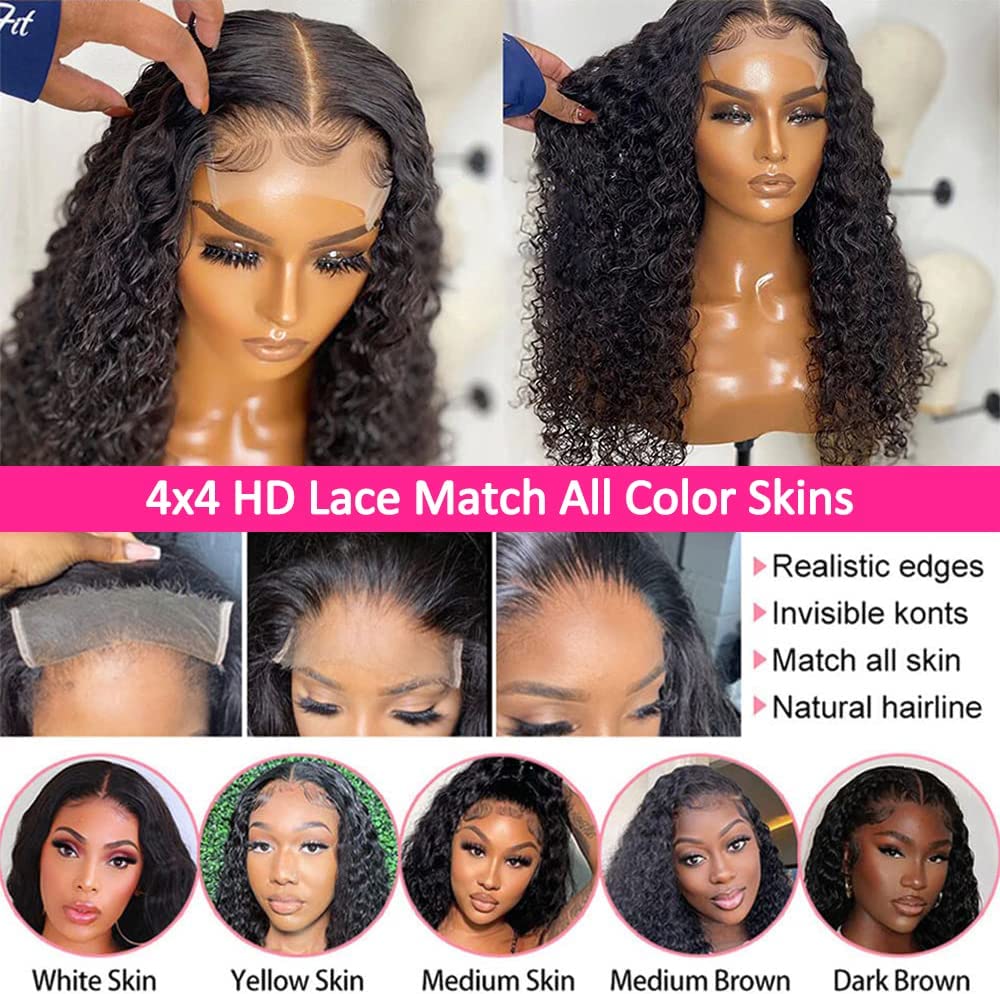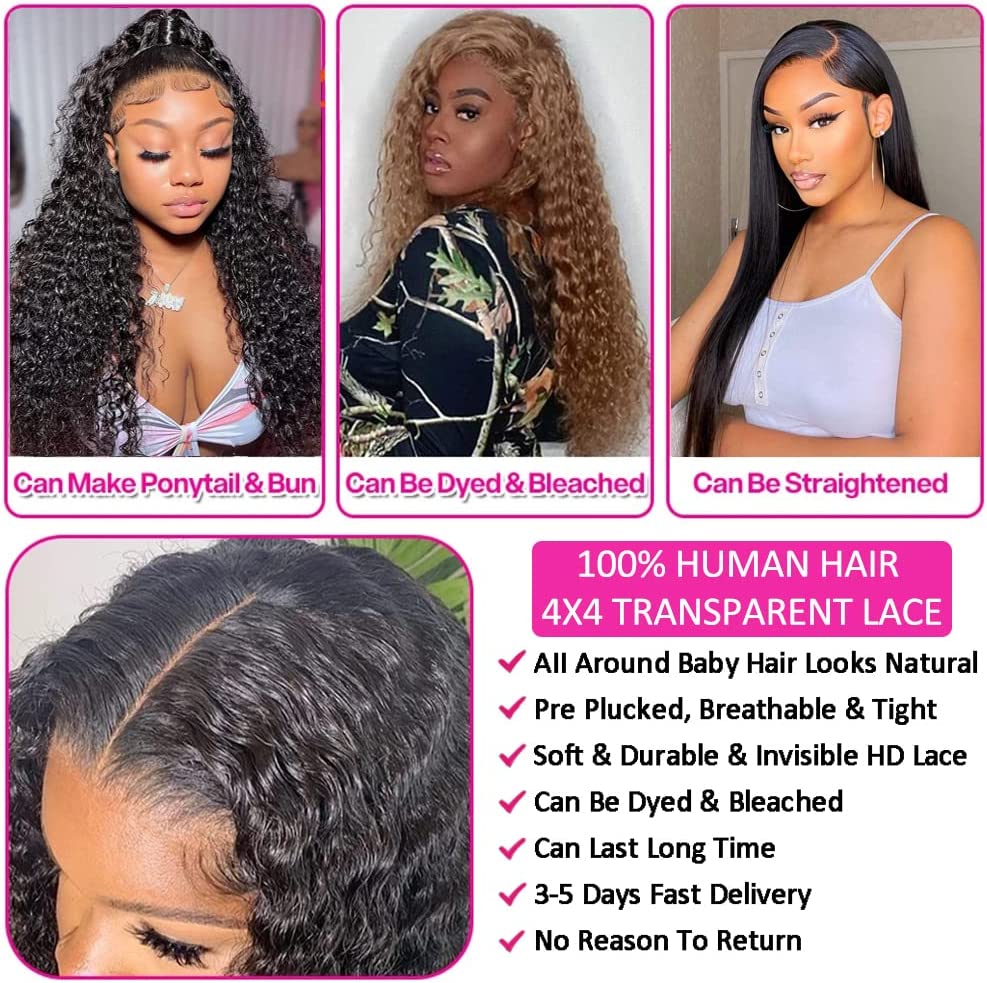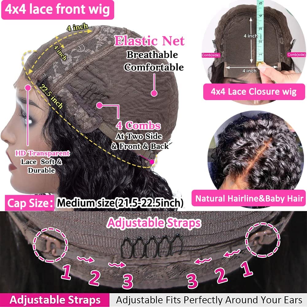 • 🧡【Wig Cap Details】4×4 Curly Lace Front Wigs Human Hair Default Average Cap Medium Size Cap(22.5inch) and HD Transparent Lace with a Adjustable Straps, 4 Combs(2 sides,front and back) Can Fix to Head Well,More Comfortable to Wear,Easy Install.