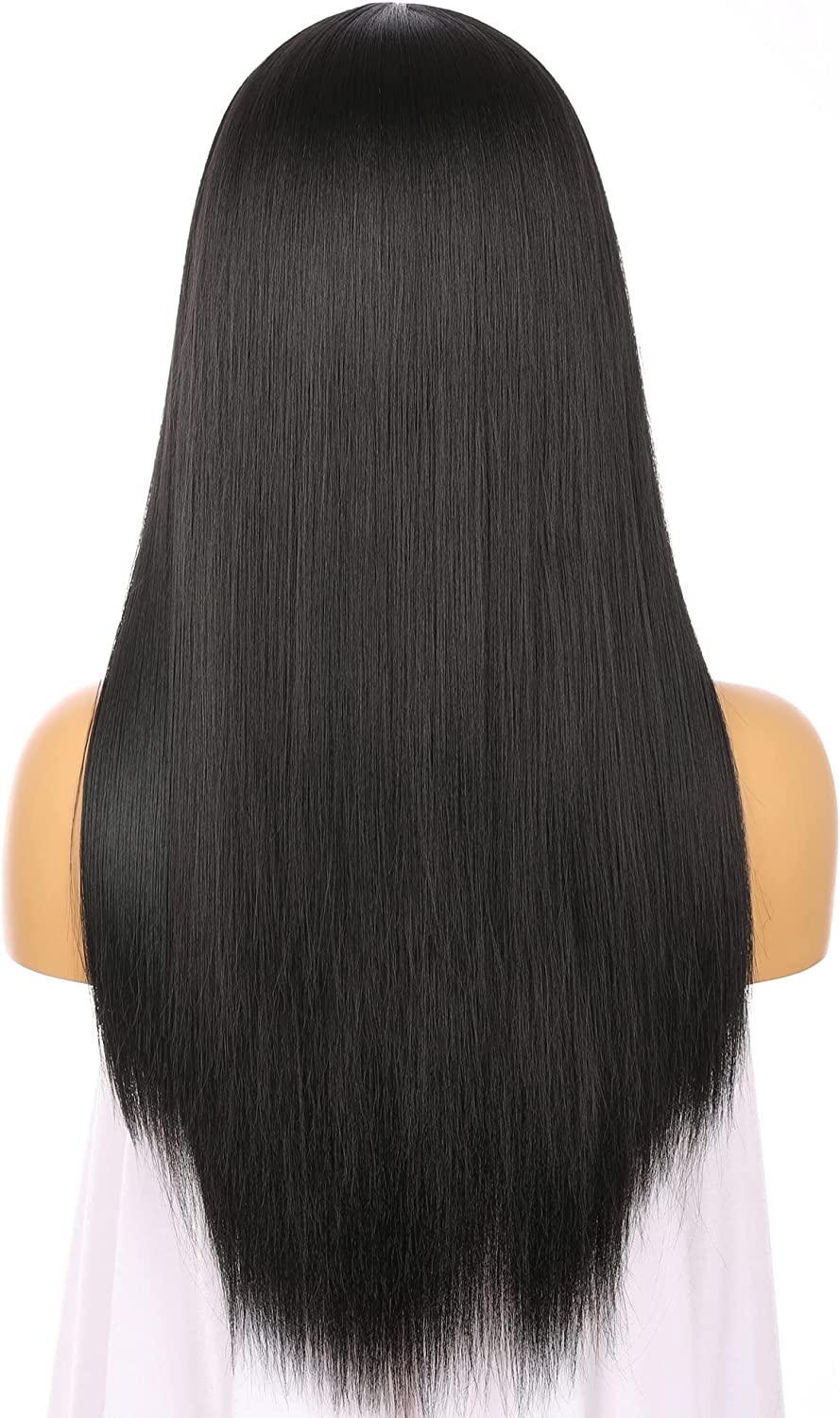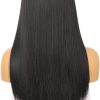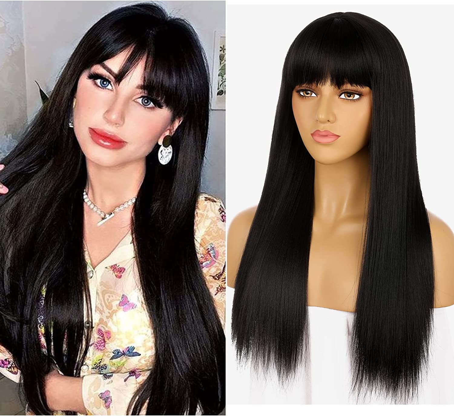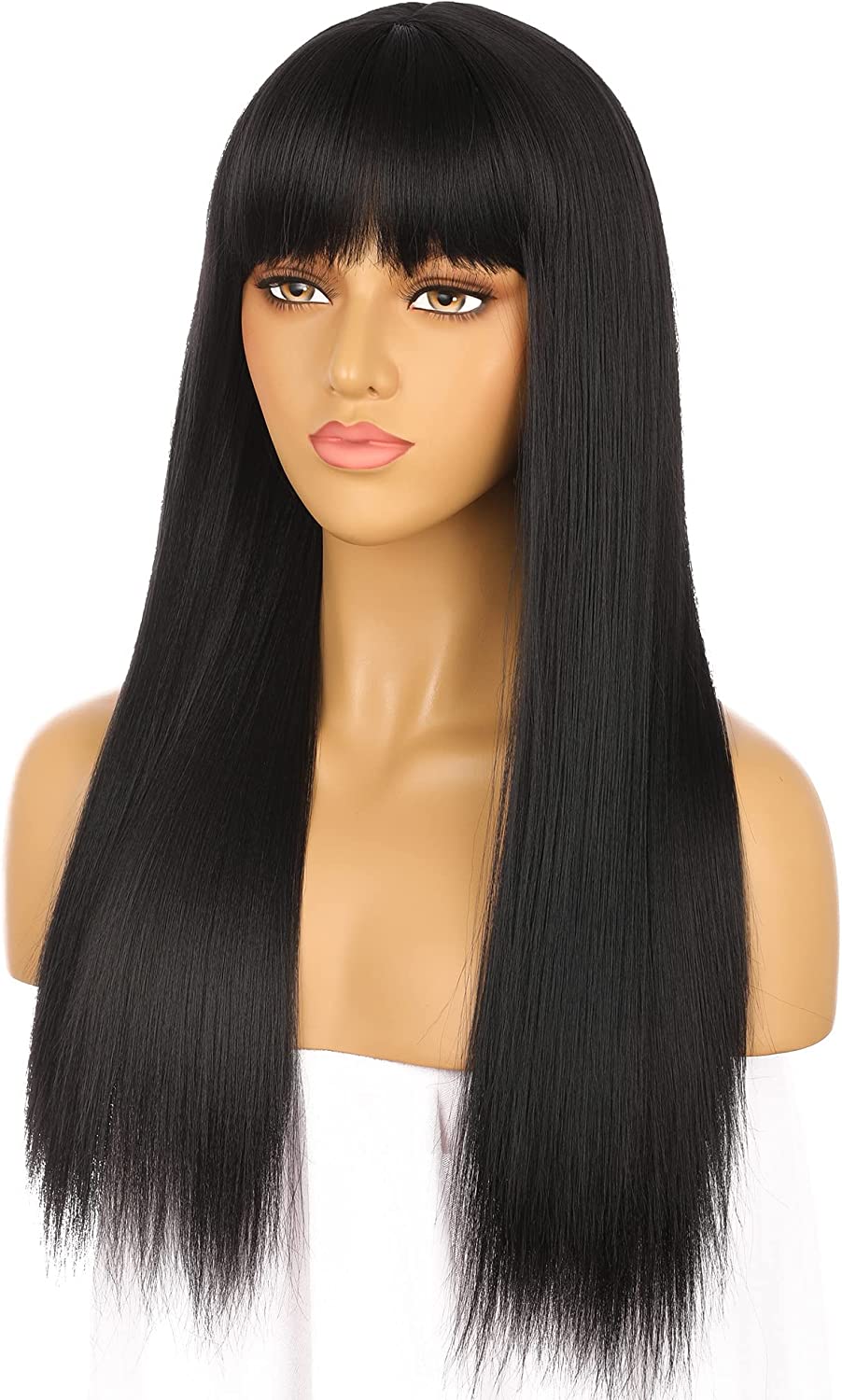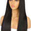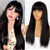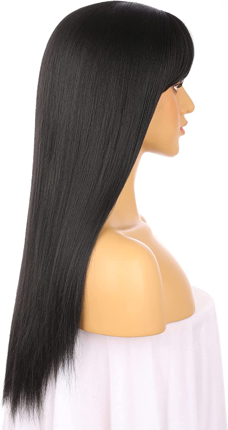 Glueless Synthetic Long Straight Wig With Bang Nature Straight Black Wig Natural Hairline Heat Resistant Fibers For Women 24 Inch