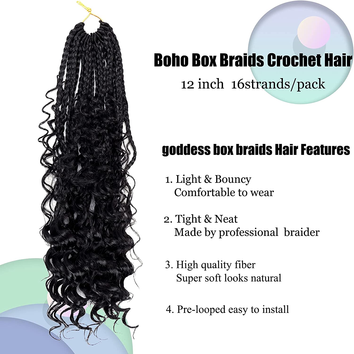 Hair Material: goddess box braids crochet hair are 100% handmade crochet braids, pre-looped and high quality fiber