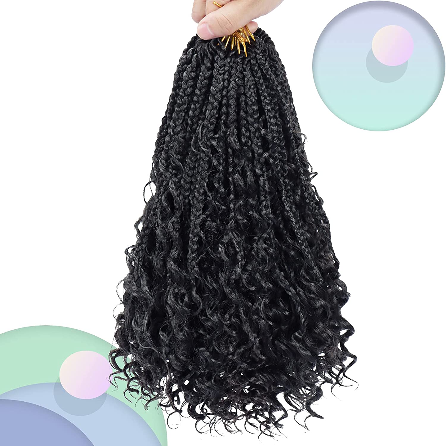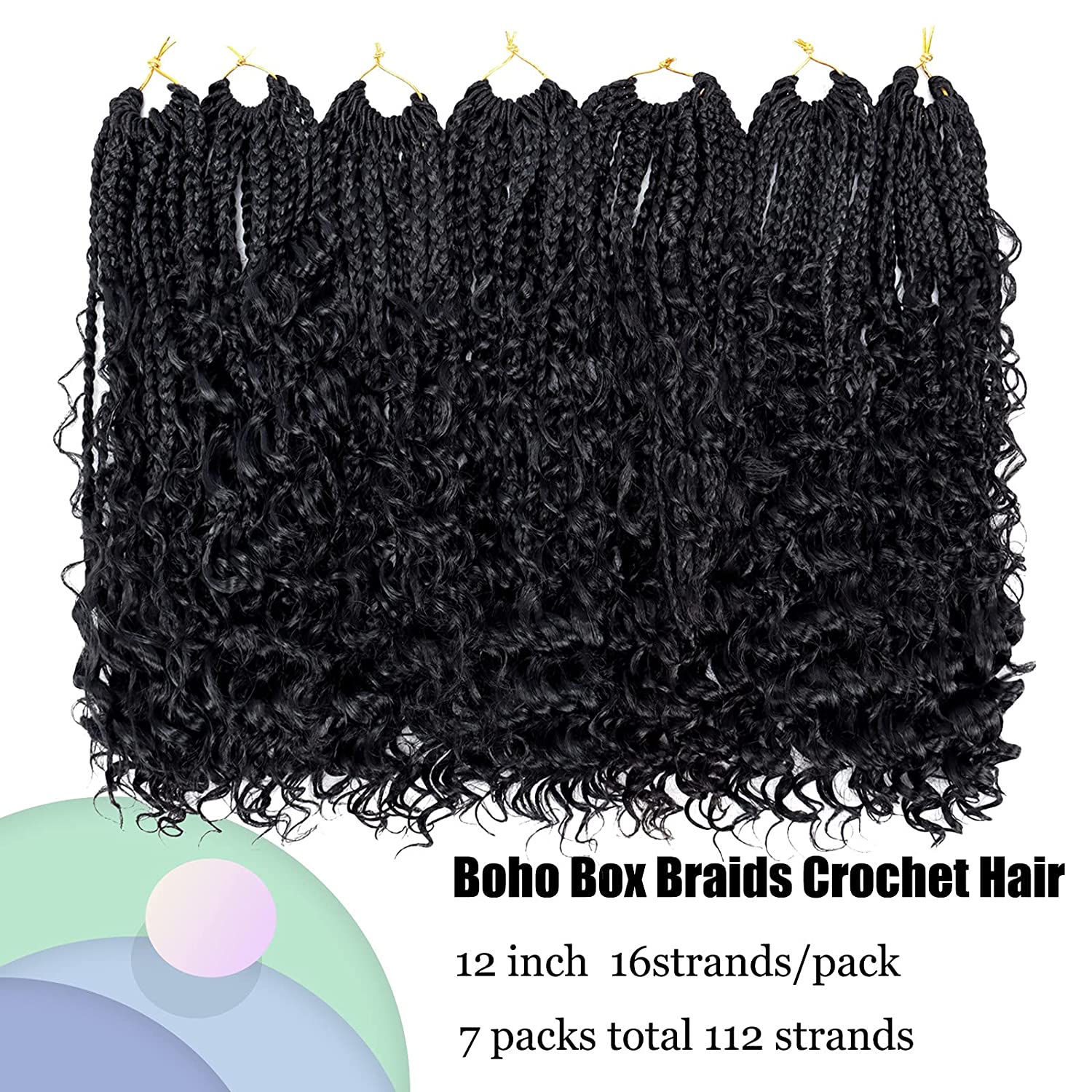 Goddess Box Braids Crochet Hair 10 Inch Bohemian Box Braids Crochet Hair With Curly Ends Boho 3x Synthetic Crochet Braiding Hair For Black Women (1 Pack, 1b#)