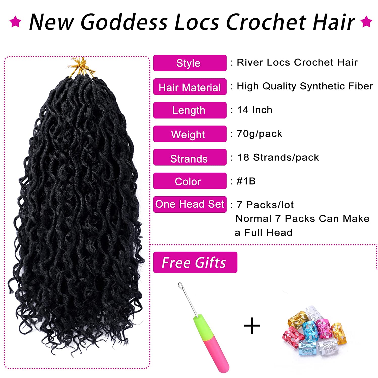 - Package: 7 packs/lot, 18 strands/pack, total 126 strands, enough for a full head. Comes with free gift: 1 crochet needle + one package colorful rings. 10 12 14 18 inches can be selected. 6 colors available: #1b, #1b/27, #1b/30, #1b/bug, #1b/gray, #27/613, more colors will be added.