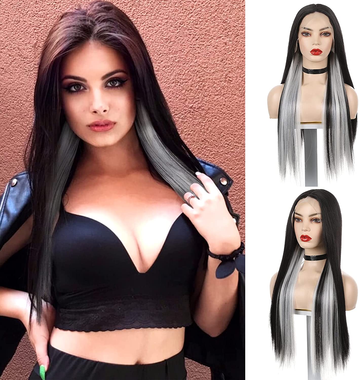 Golden Blonde Front Wigs for Women Straight Hair Wigs Middle Part Glueless Wig 22 Inch Wigs Straight Hair Synthetic Natural Wigs For Women (2hesilver)