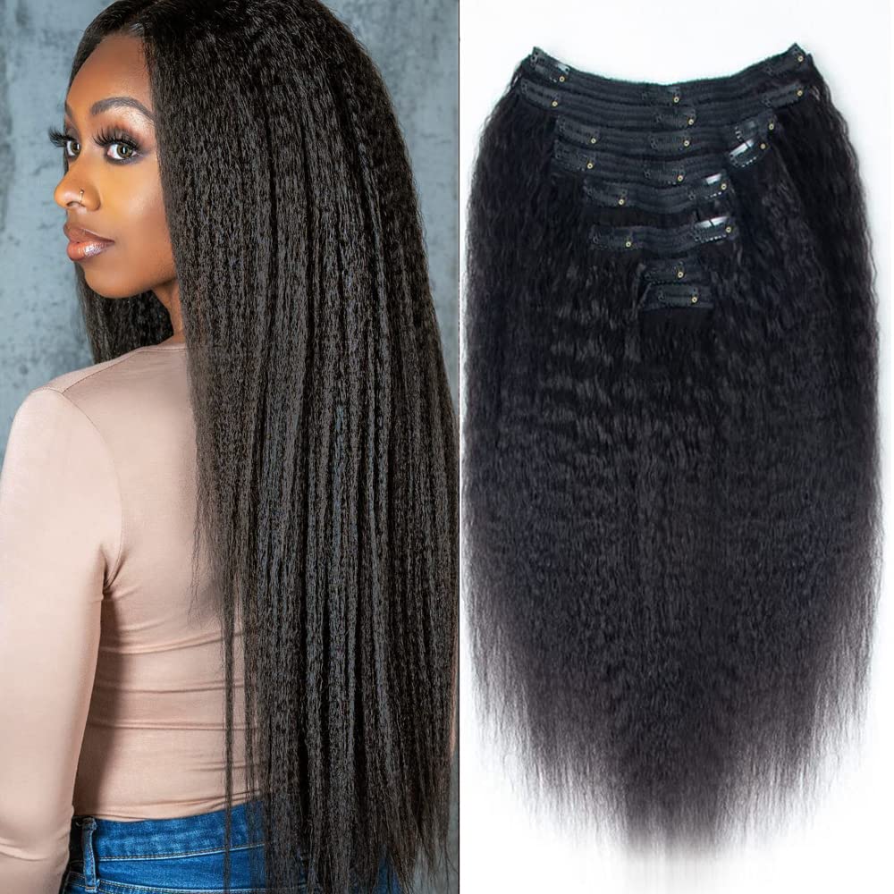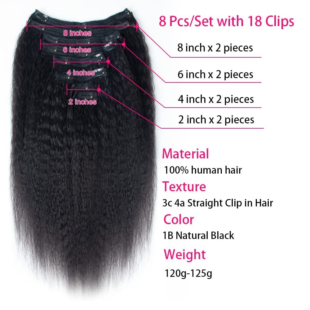Hair Extensions Clip In Human Hair 8pcs Per Set With 18clips Double Weft Clip In Human Hair Extensions Brazilian Virgin Human Hair Natural Black Color For Black Women (18 Inch, Natural Black Kinky Straight)