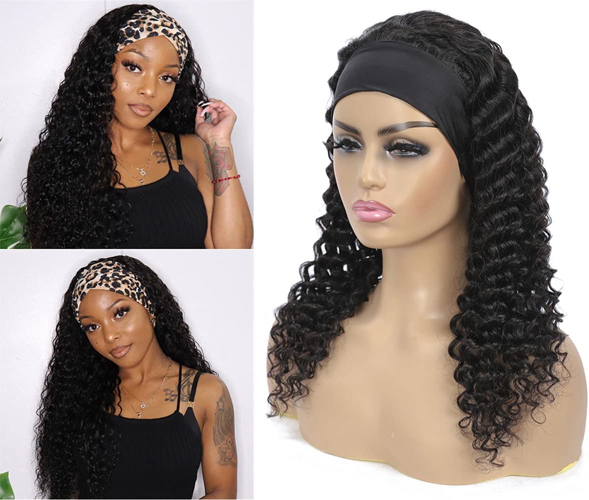 1. Window Design Bang Wig: Best Beginner HEADBAND WIG! adapted to beginners. Super save money and time! Complete protective style without leaving aside. Allows you to show your own natural hair line, the Deep Wave Bang Wig is the most popular wig this year. You don’t need gule or gel, easy to install and secure, perfect for beginners, lazy girls, daily work or training.
