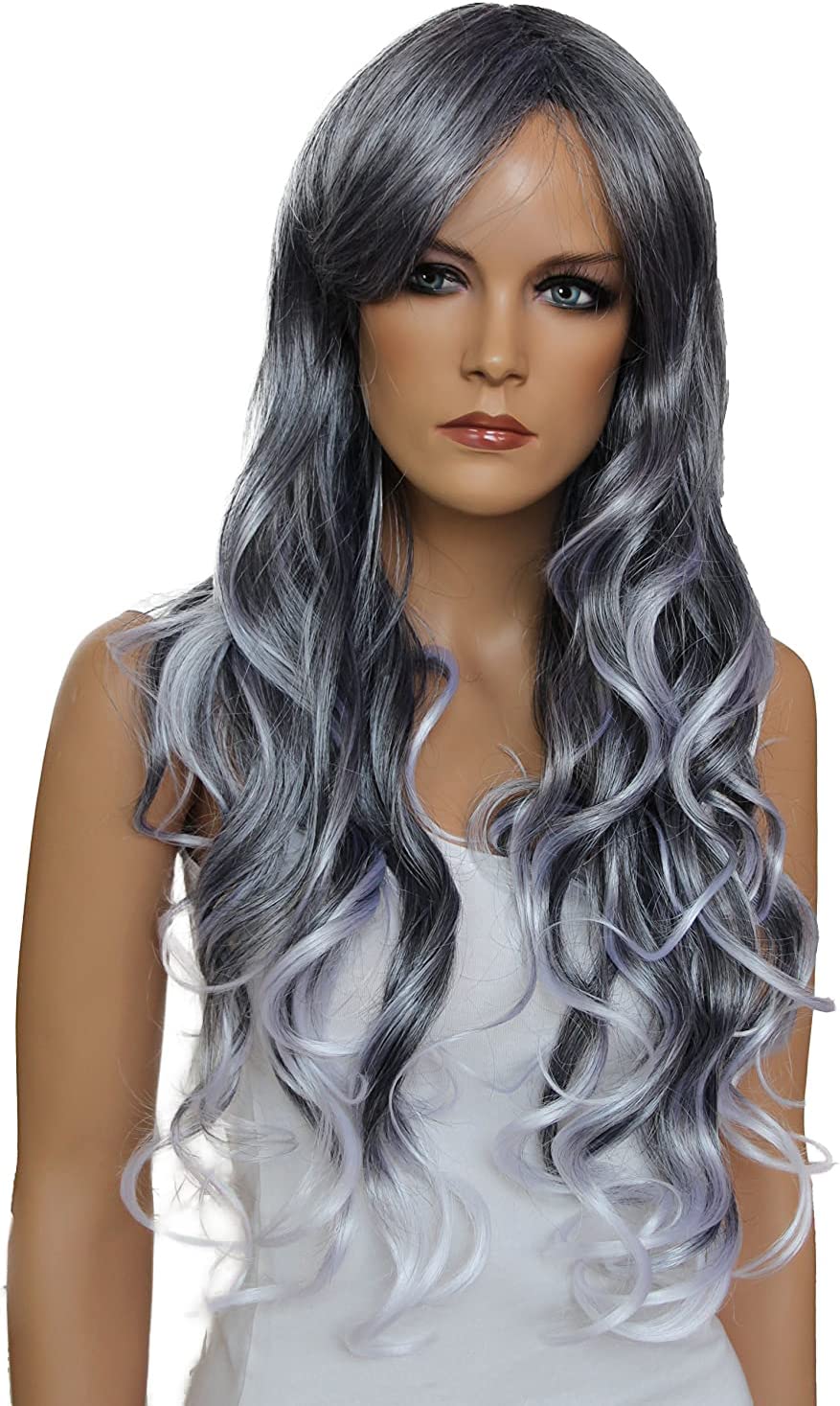 hair long hair cosplay theater show Synthetic wigs wavy gray mixture fs836j