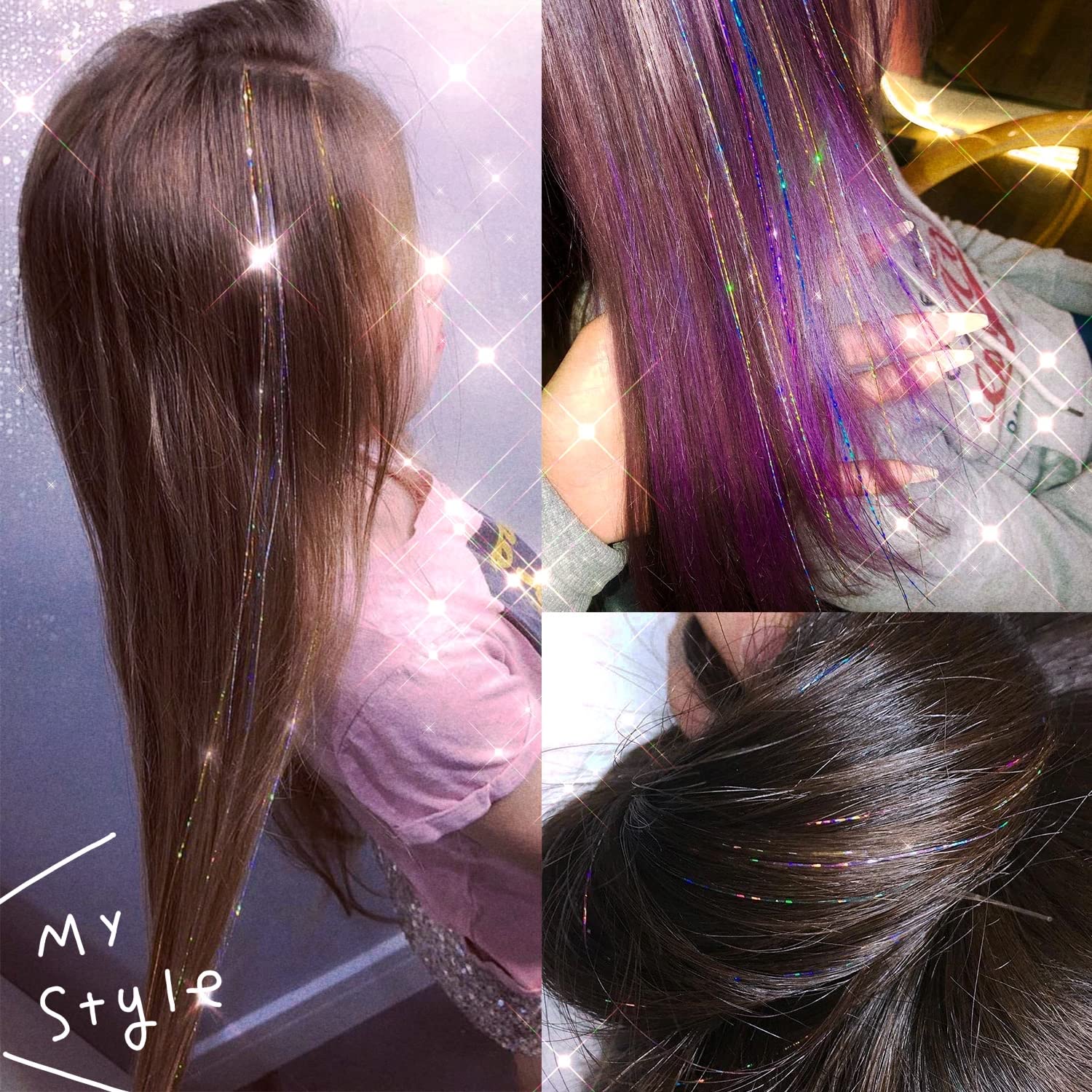 • 🌟【Hiar tinsel Easy Match Your Style】The Hair Tinsel is the latest trend in hair fashion and the perfect hair accessory for girls of all ages.Adds amazing colors and sparkle to hair. Stunning when it catches the light and shines in hair and you get tons of compliments.