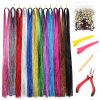 Hair Tinsel Kit With Tools 47inch 13colors Glitter Hair Tinsel 2600 Strands Streak Bling Colored Hair Extensions Tinsel Heat Resistant For Women Girls Sparkling Party Fairy Hair Tinsel Extensions (13 Pcs/pack)