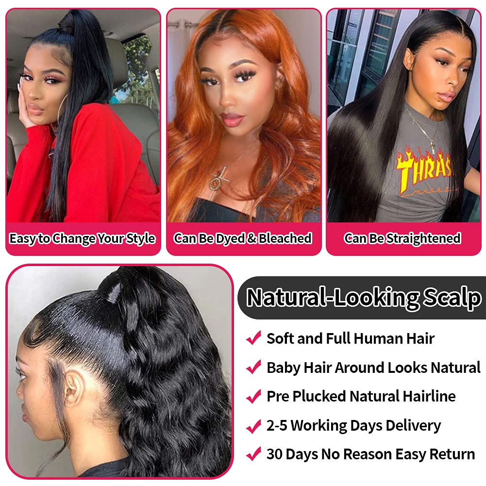 HD Lace Front Wigs Human Hair Pre Plucked Body Wave 13×4 Frontal Wigs Human Hair 10A Brazilian Glueless Human Hair Wigs for Black Women 180% Density Natural Color 16 Inch