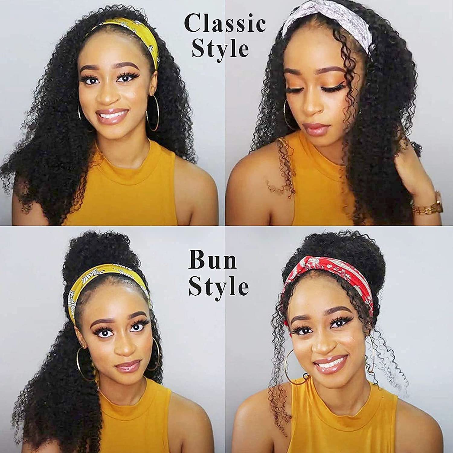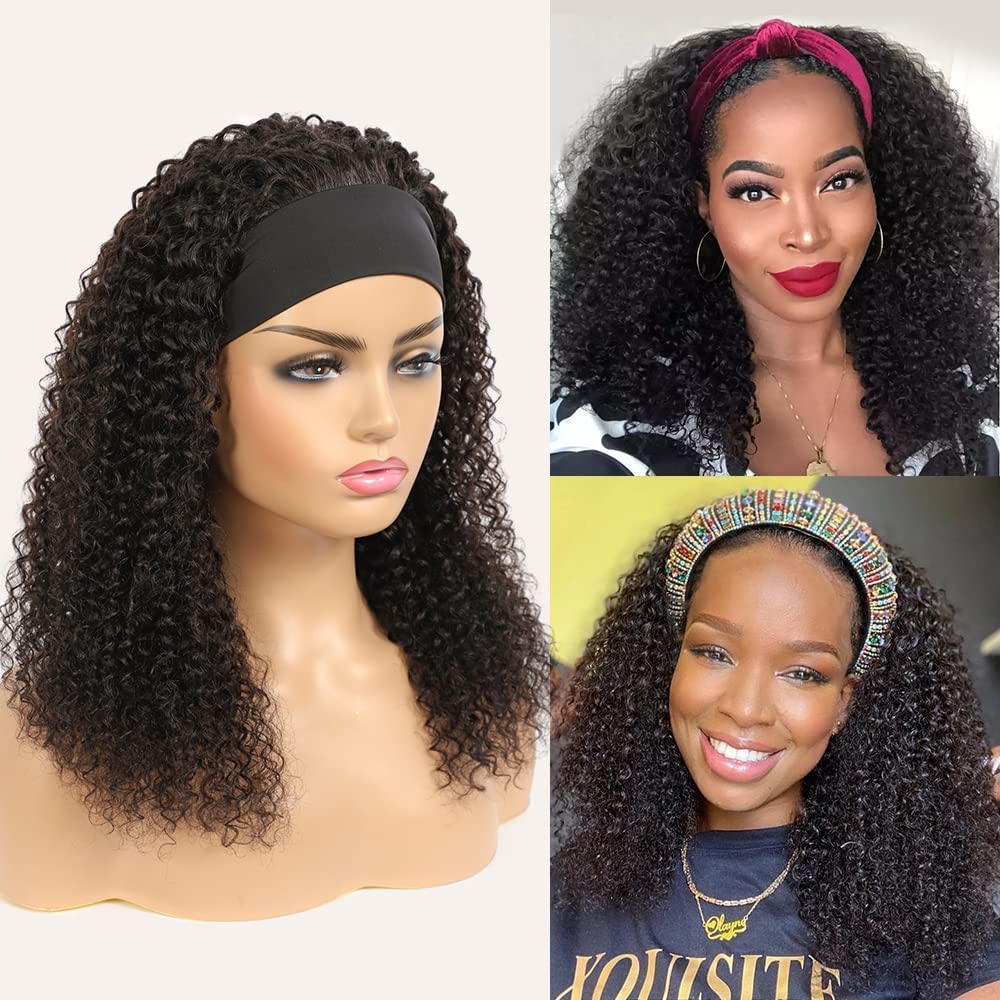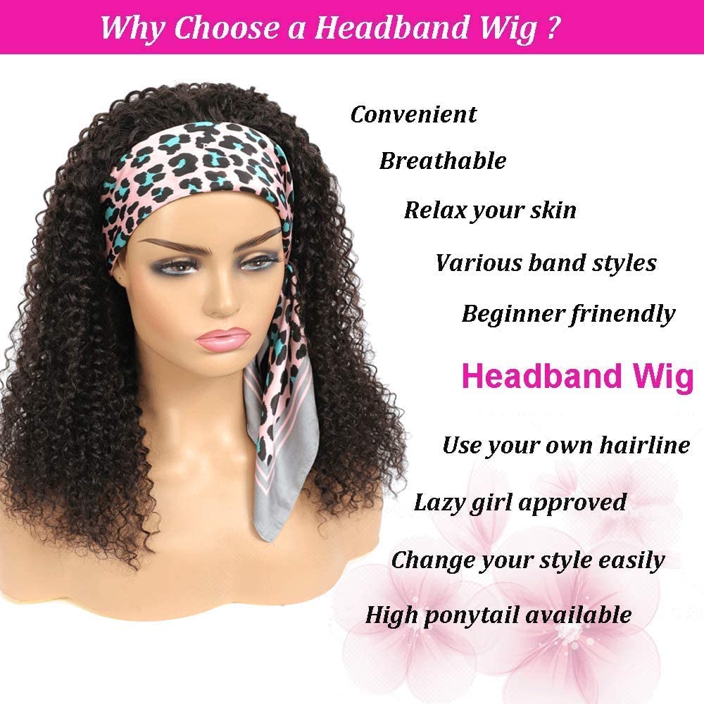 Headband Wig Brazilian Wigs For Women Human Hair Kinky Curly Wigs For Black Women Glueless None Lace Front Wig 150% Density Real Hair Wigs Human Hair 14inch