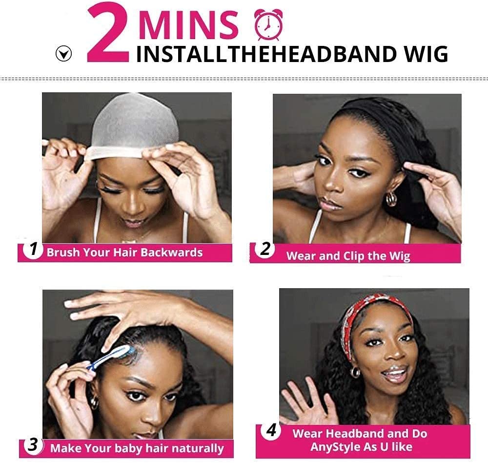 - 【Human Hair Wig】Real hair wigs for women human hair, it is a new designed Headband Wigs for Black Women, Magic Tape Design makes the wig very easy to wear, especially for beginner. You can get a New Look in a few minutes. And you can style with different headbands.