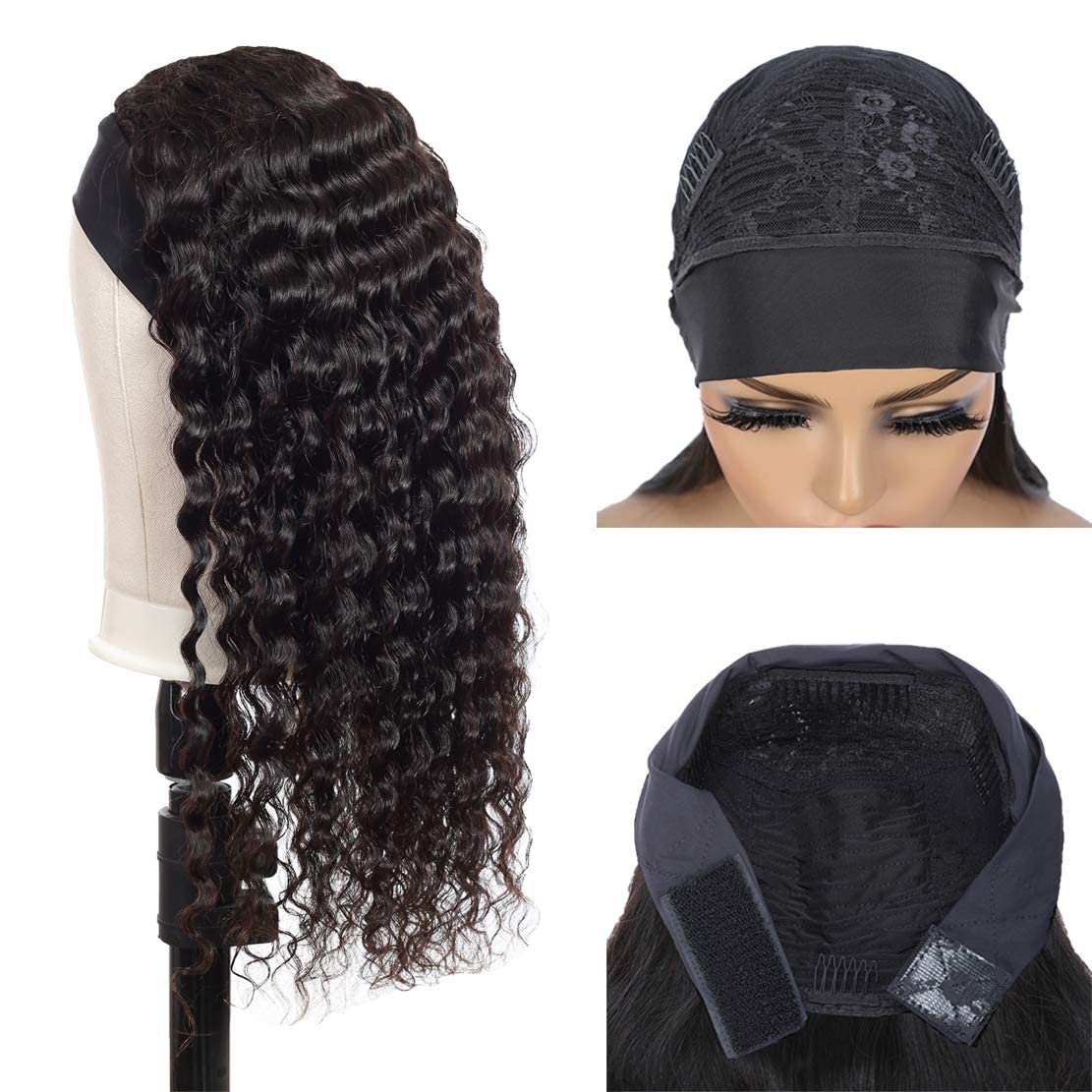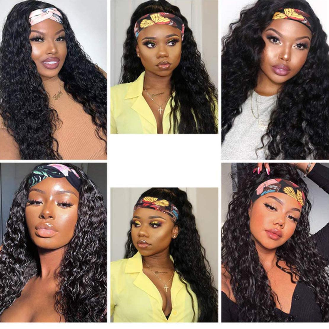 - 2 【Headband wigs】: Deep Wave human hair headband wigs for Black Women, Silky, Soft, No Tangle, No Shedding. Easy snapping installation perfect for beginners, lazy girls, daily working or workout.