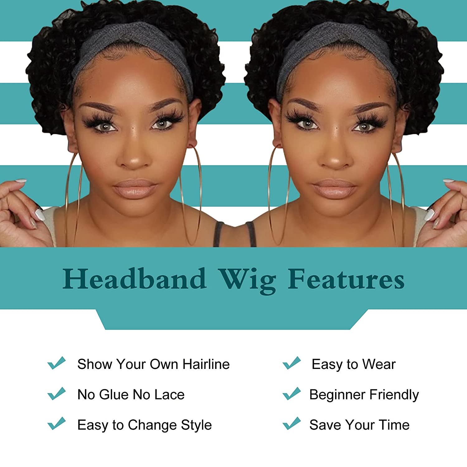 • ❀Feature: The Short Curly Headband Wig Is 6 Inches, Color Is Black.Wig Cap Size:Medium Cap(21.5″-22.5″) Available With 1 Adjustable Velcro Snapping and 3 Combs Inside,You Also Can Adjust The Velcro According To Your Head Size.