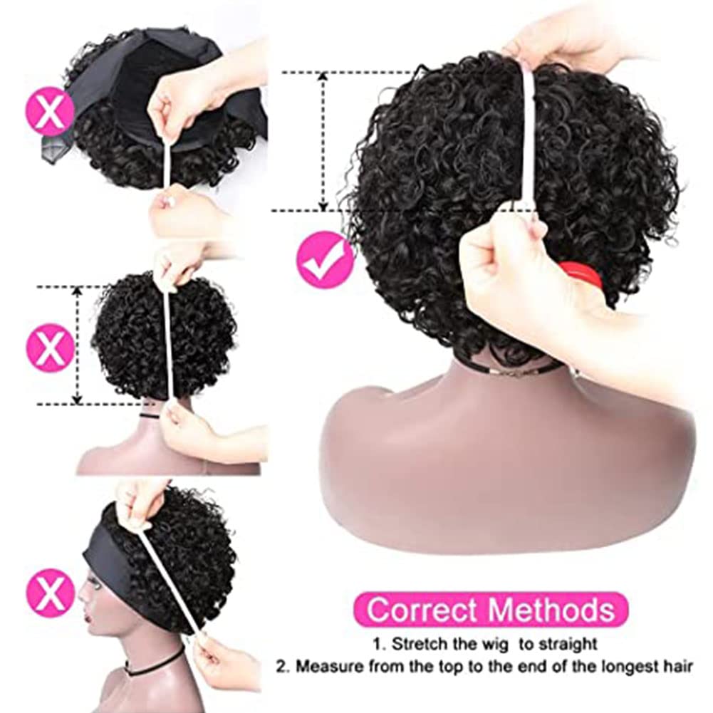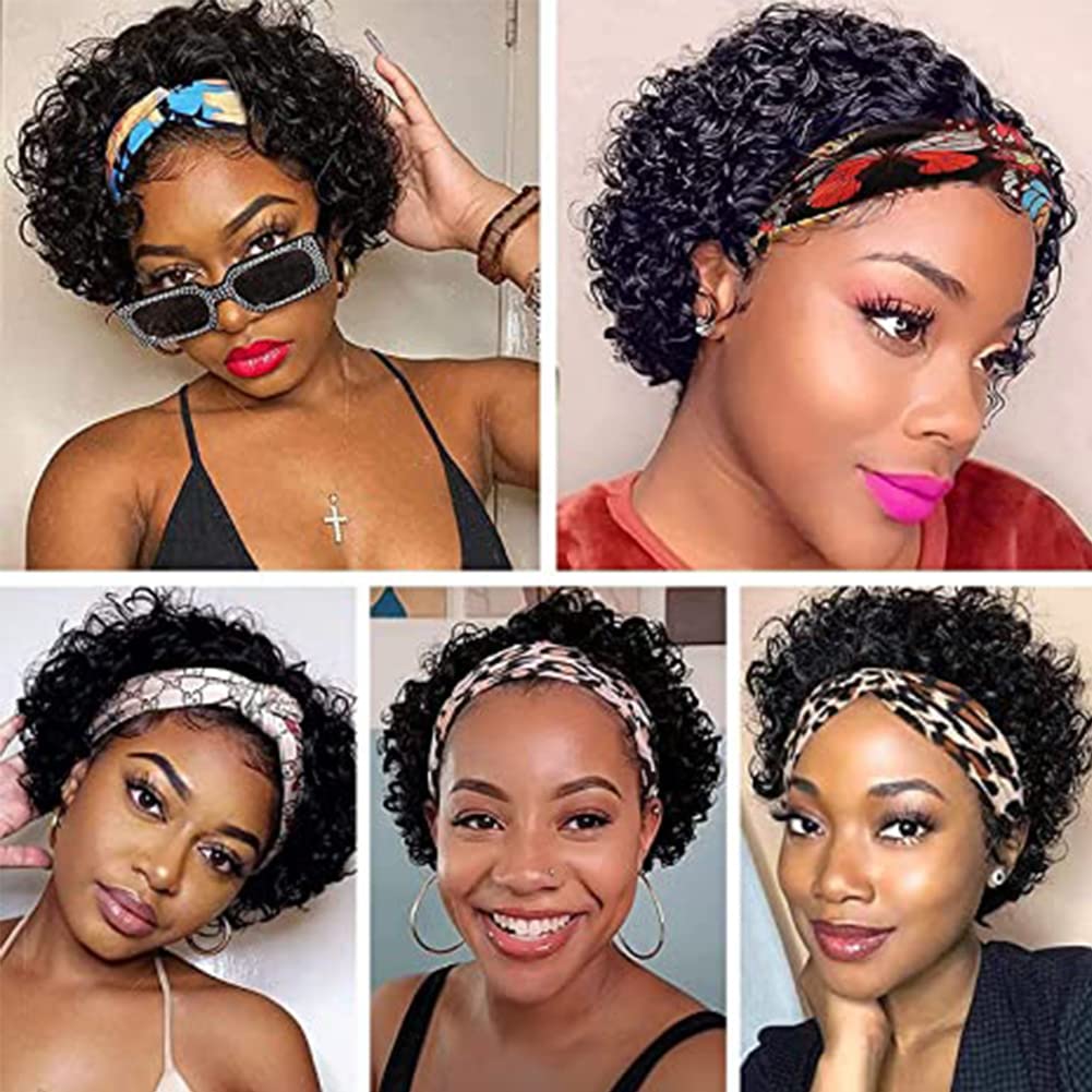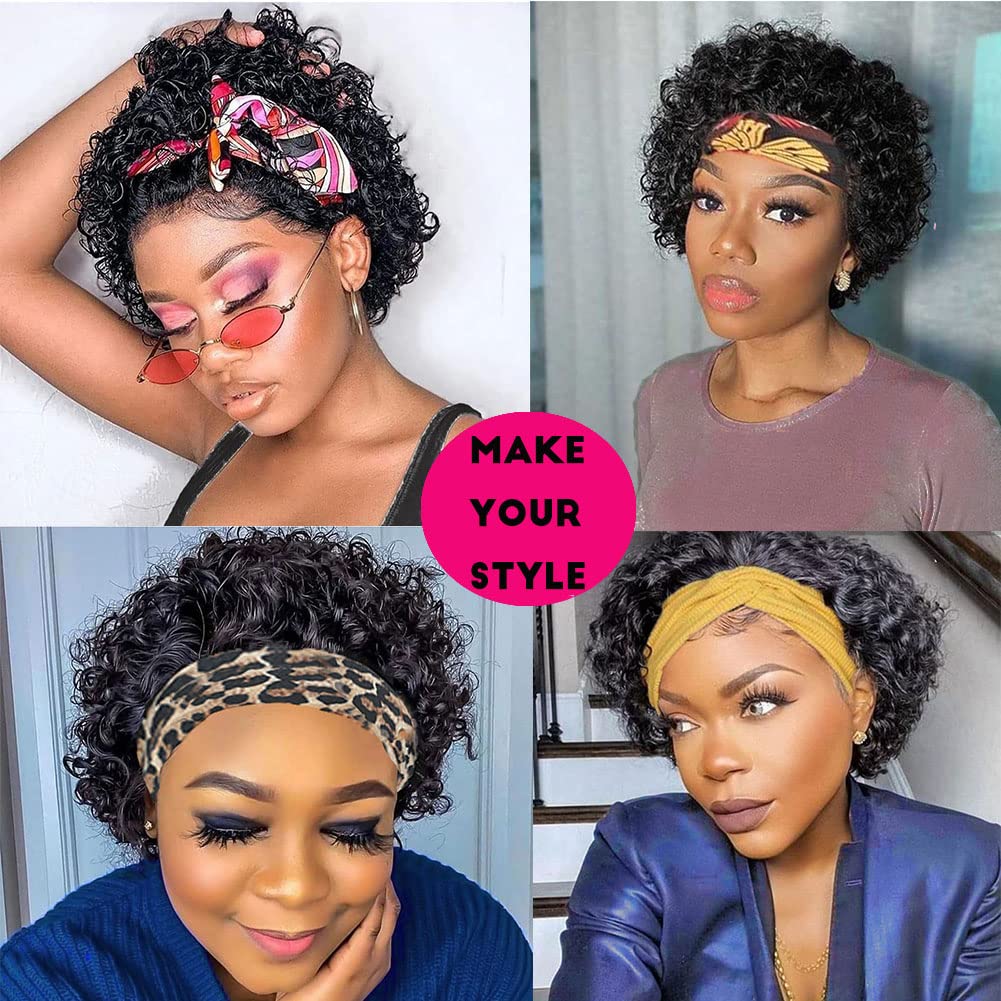 • New Look:curly headband wig human hair with pixie cut,glueless human hair wig,Elastic Ice Silk Head band do a good Job with covering the tracks in the front Looks nature and cute.