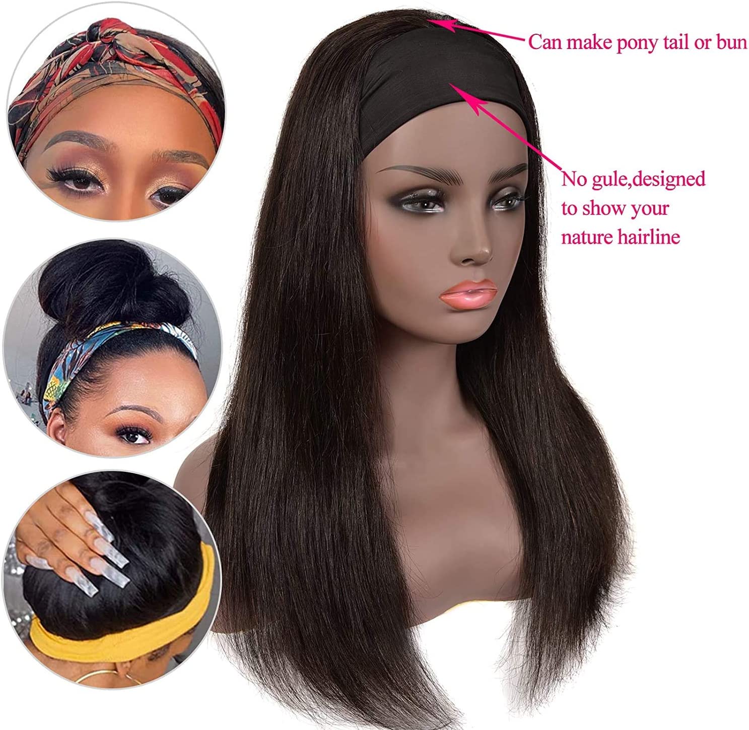 - 5.🌵 [What Will You Receive]: Gorgeous Straight Headband Wigs + Hair Care Card+ 1Pc Wig Caps+1Pcs Cute Headbands What Can Match Your Different Dress Up.