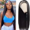 Headband Wig Straight Human Hair Wigs For Black Women Glueless None Lace Front Wigs Straight Wigs Human Hair Headband Half Wig For Beginners 150% Density 10 Inch
