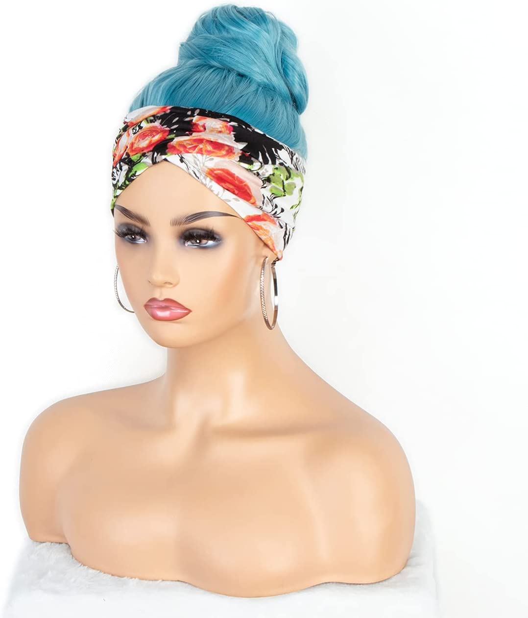 • 【Package】:1pcs x Synthetic Blue Headband Wigs + 2 pcs x Stretchable Elastic Nylon Caps + 2 pcs x Random Headbands.