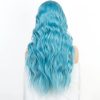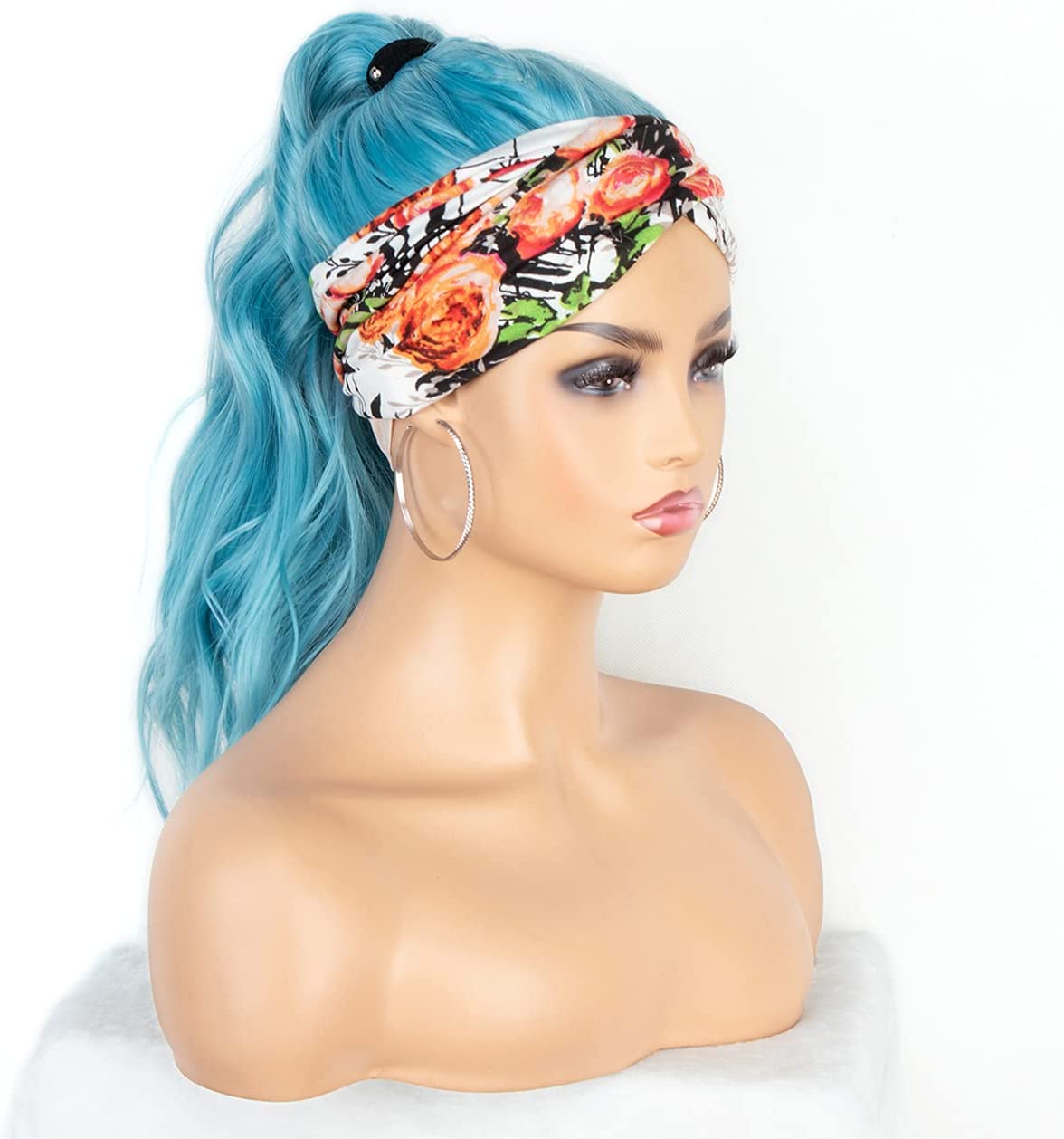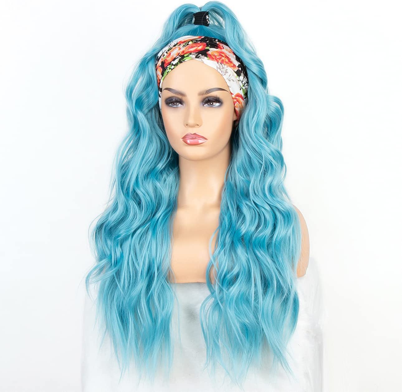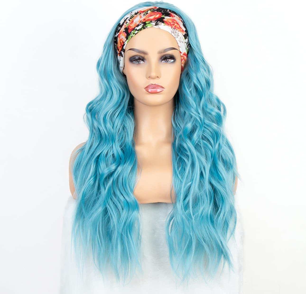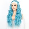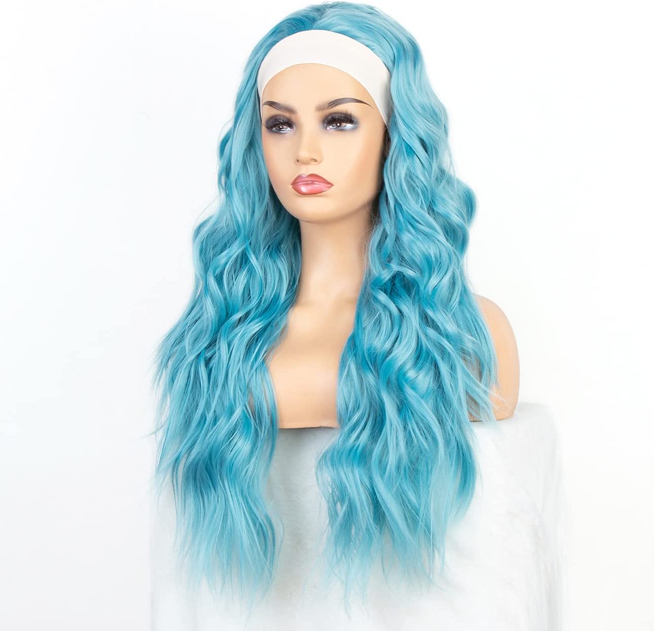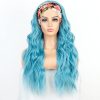 Headband Wigs For Women Blue Synthetic Headband Wig Long Wavy None Lace Front Wig