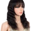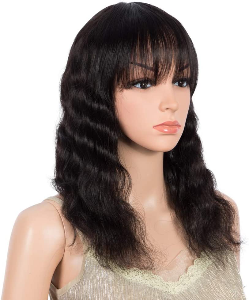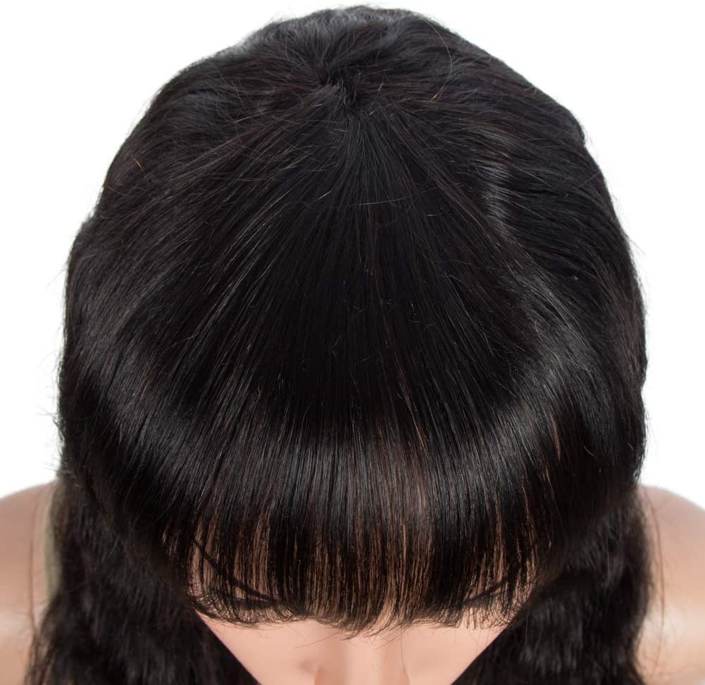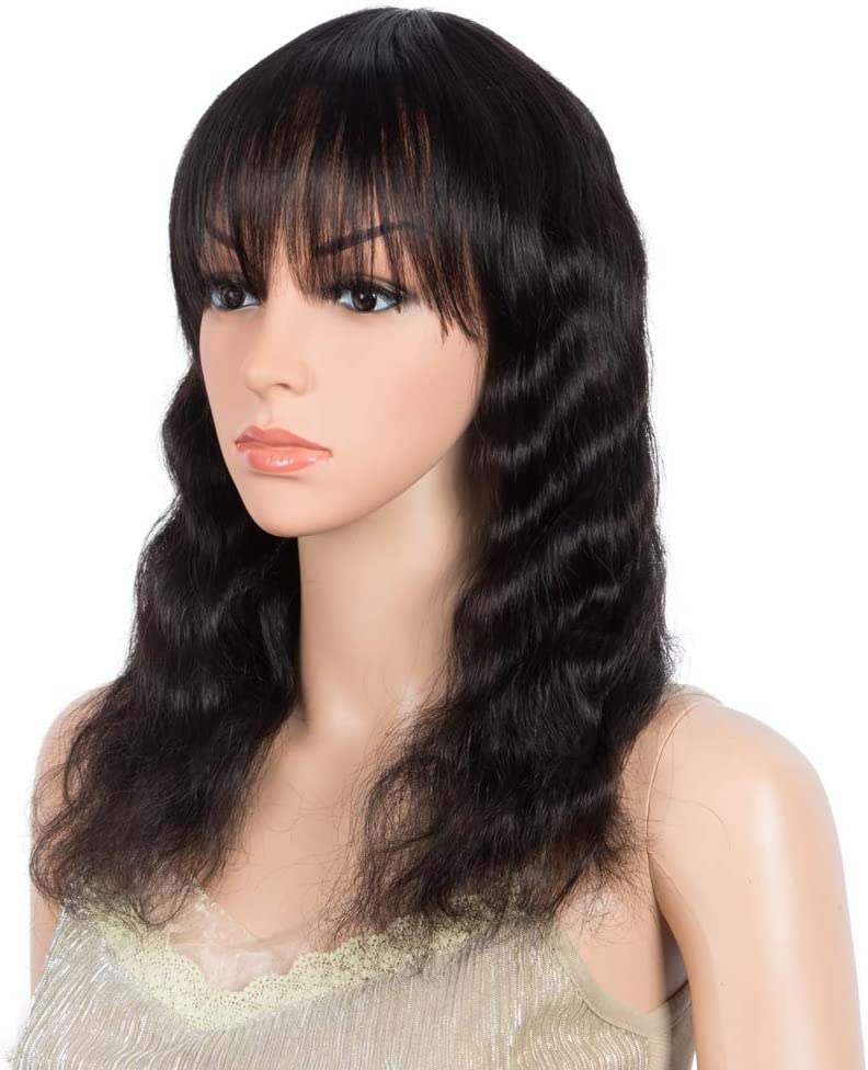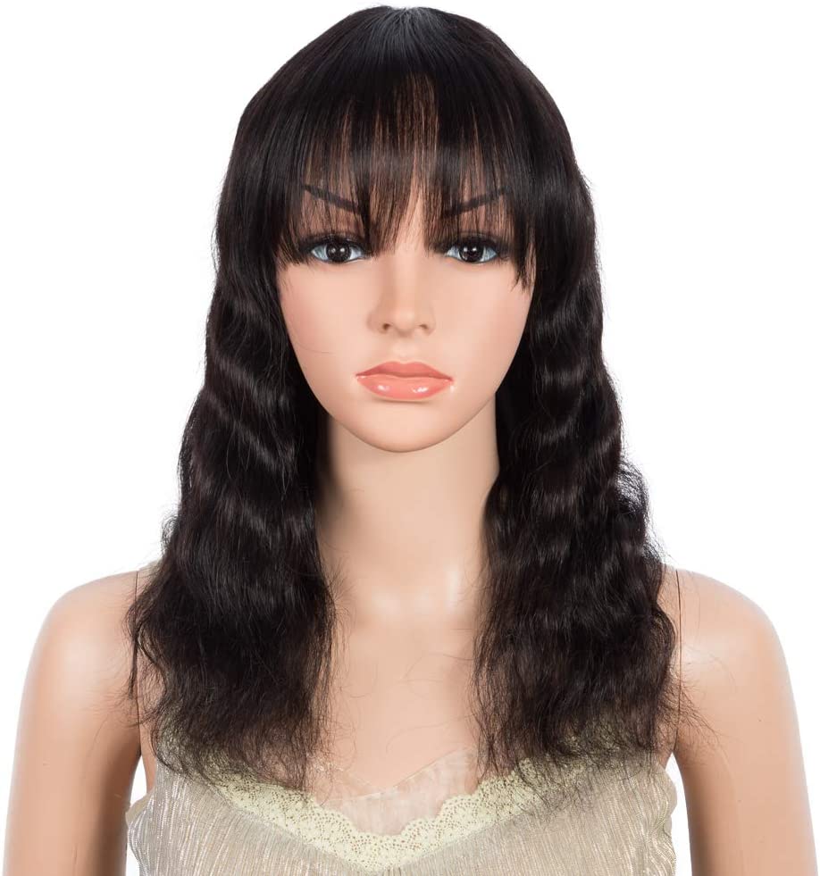 Human Hair Wigs For Black Women Body Wave Wigs With Bangs 10a Unprocessed Brazilian Virgin Remy Hair 150% Density (16 Inch, Natural Black)