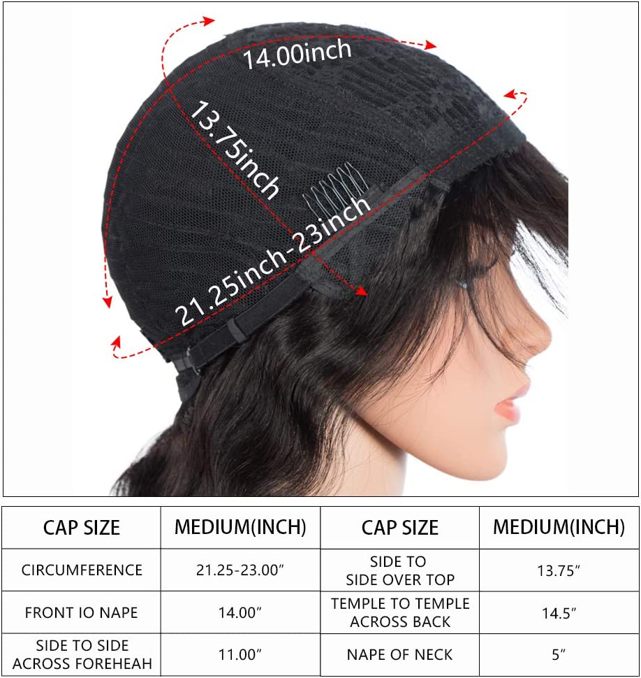 • 〖Wig Cap〗 The wig cap circumference is about 22-23 inches. It’s also designed with three security combs and two adjustable straps if in need to make any cap adjustment.