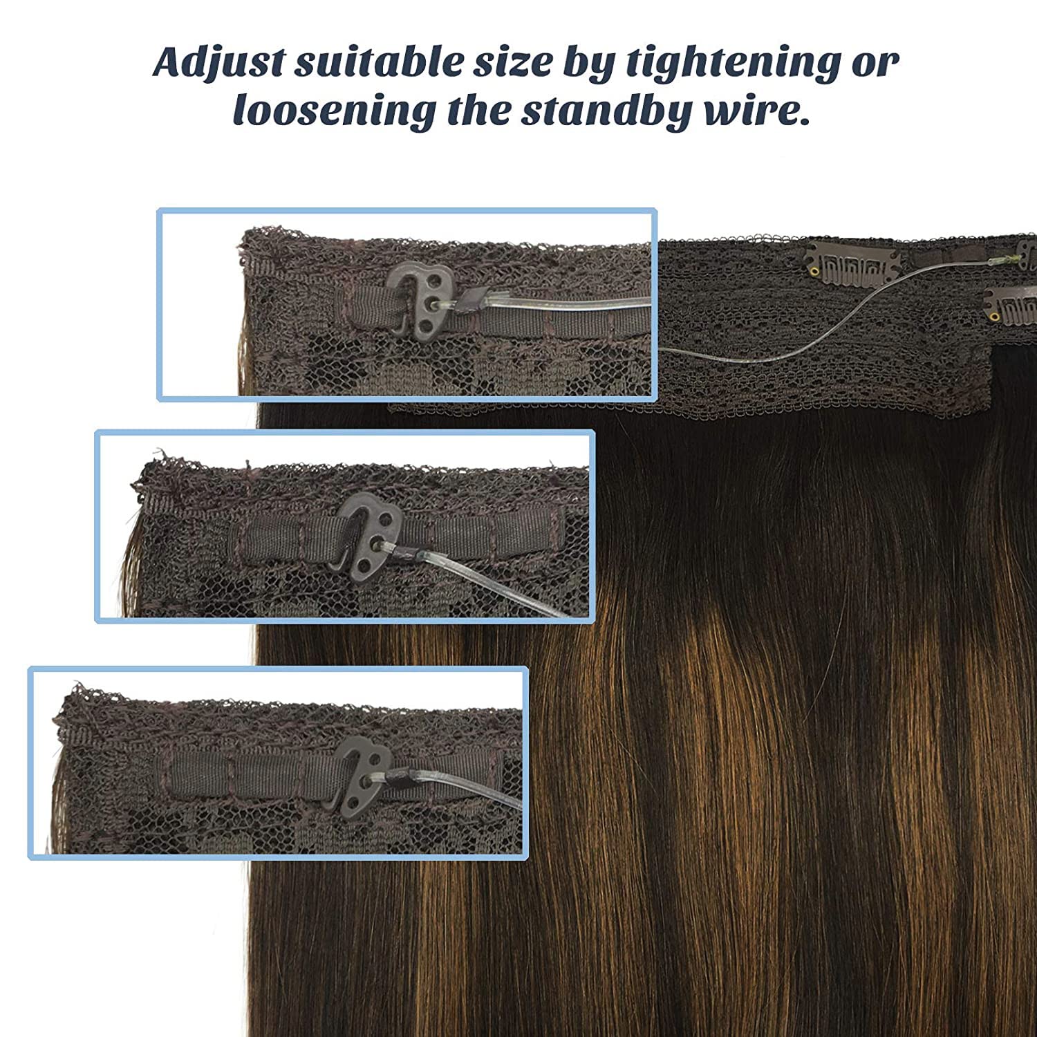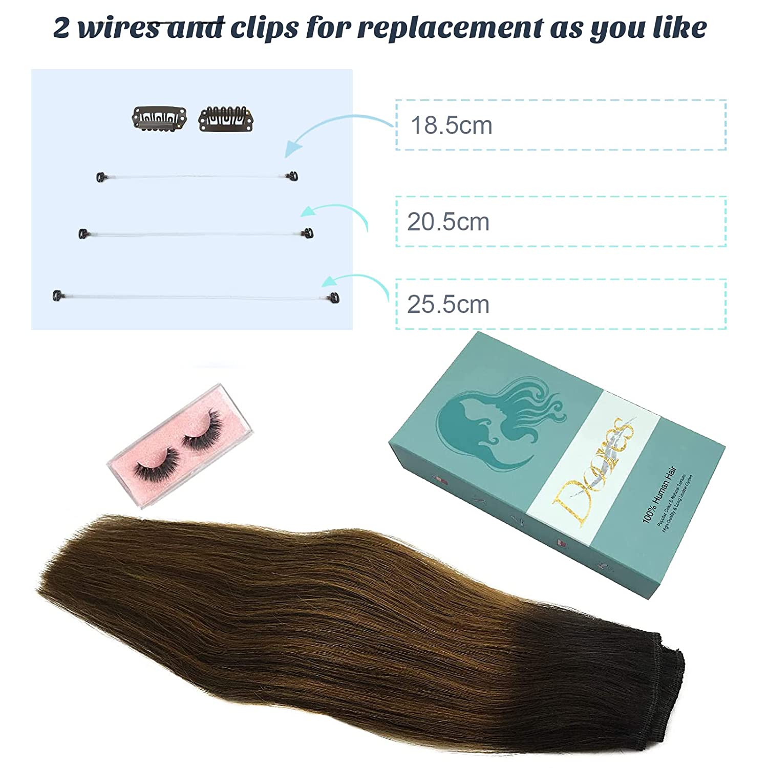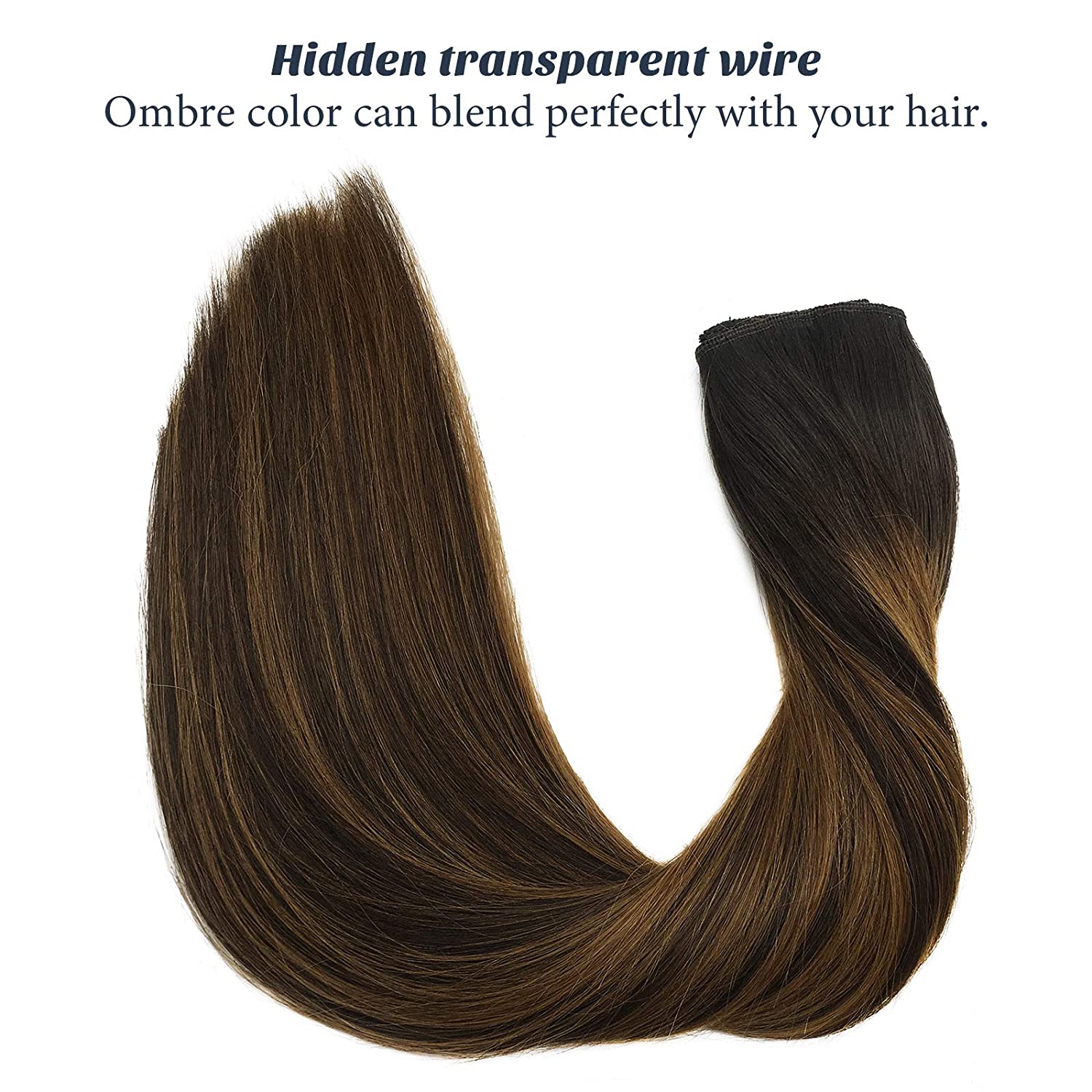 Human Hair Wire Extensions Balayage Dark Brown To Chestnut Brown 70g 12 Inch Straight Extensions Natural Wire Hair Extensions With Transparent Fish Line Invisible