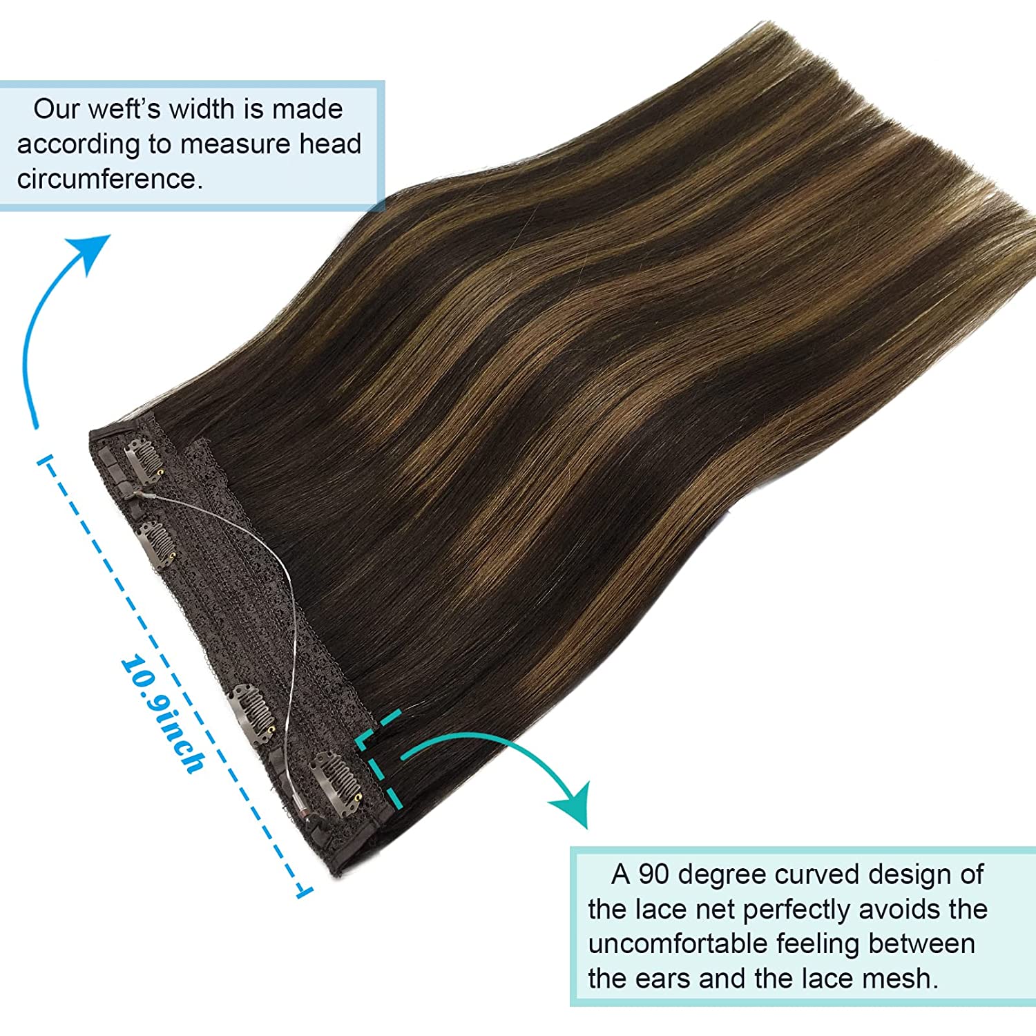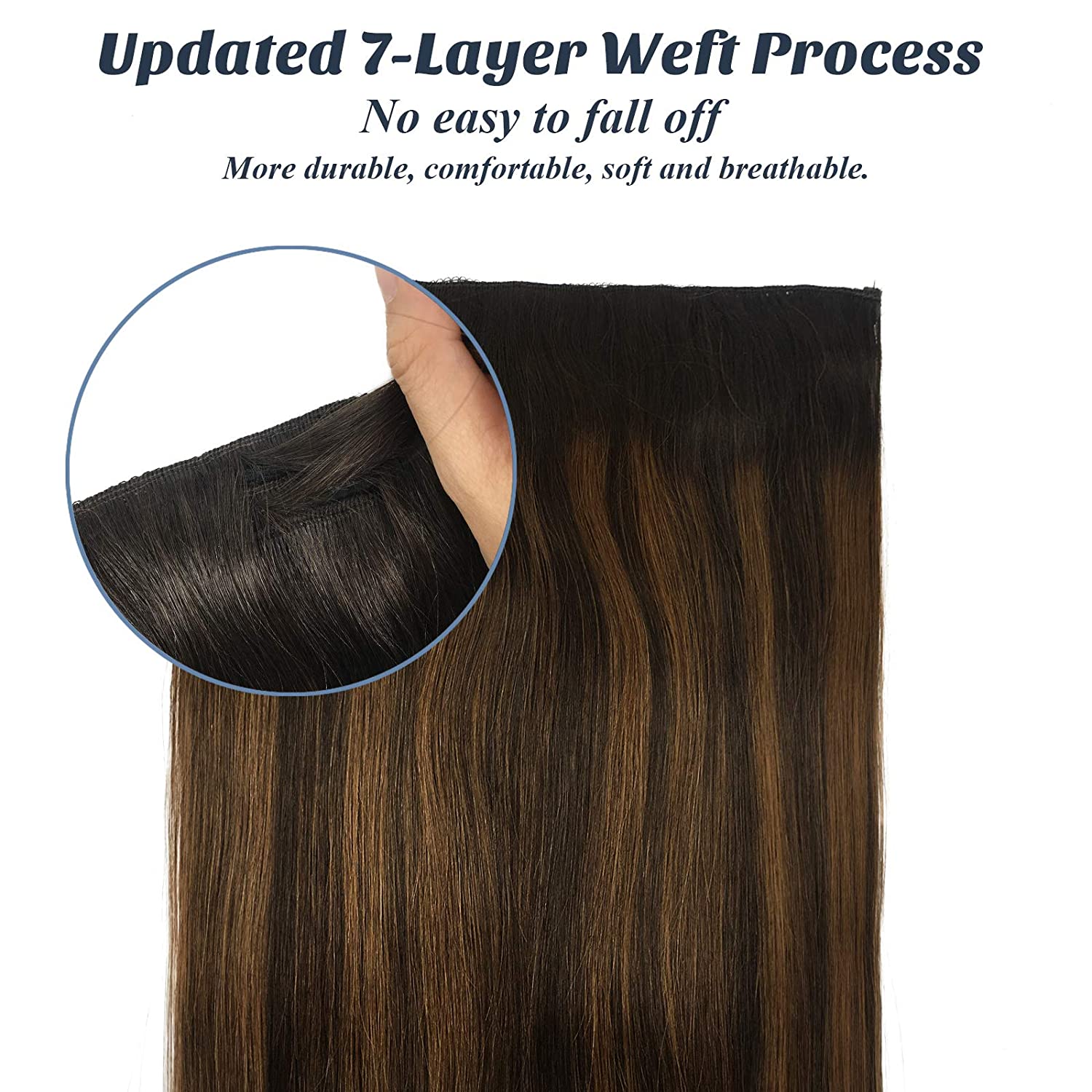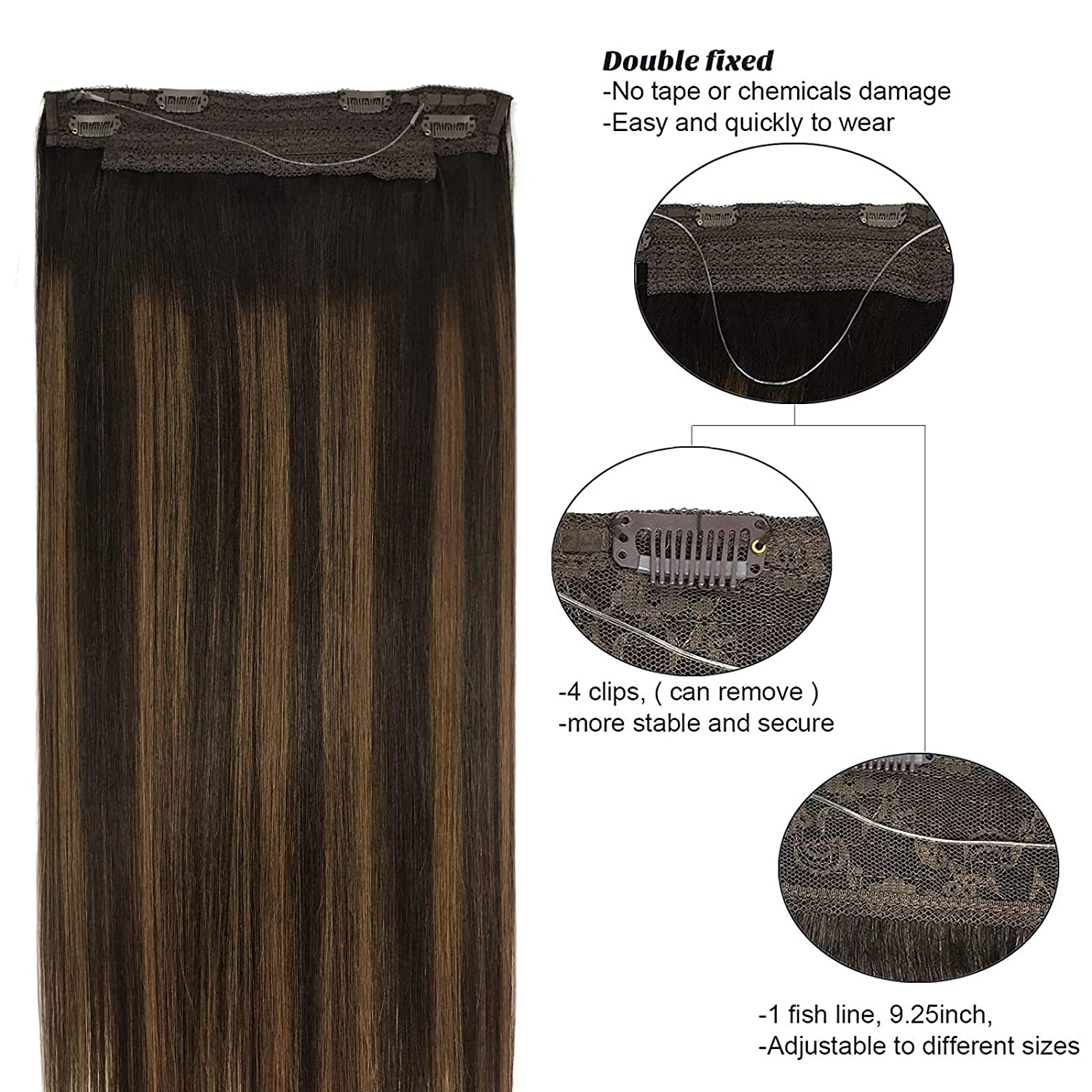 Human Hair Wire Extensions Balayage Dark Brown To Chestnut Brown 70g 12 Inch Straight Extensions Natural Wire Hair Extensions With Transparent Fish Line Invisible