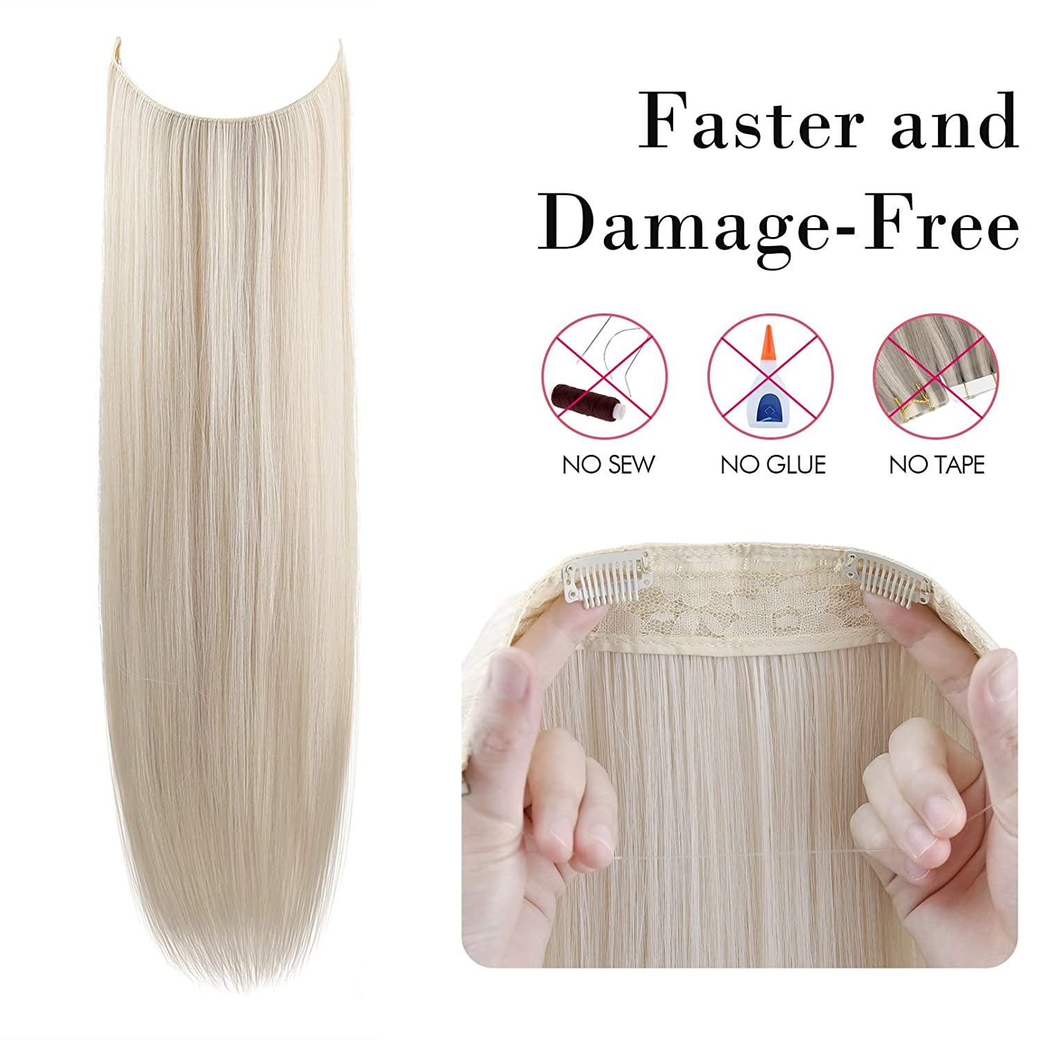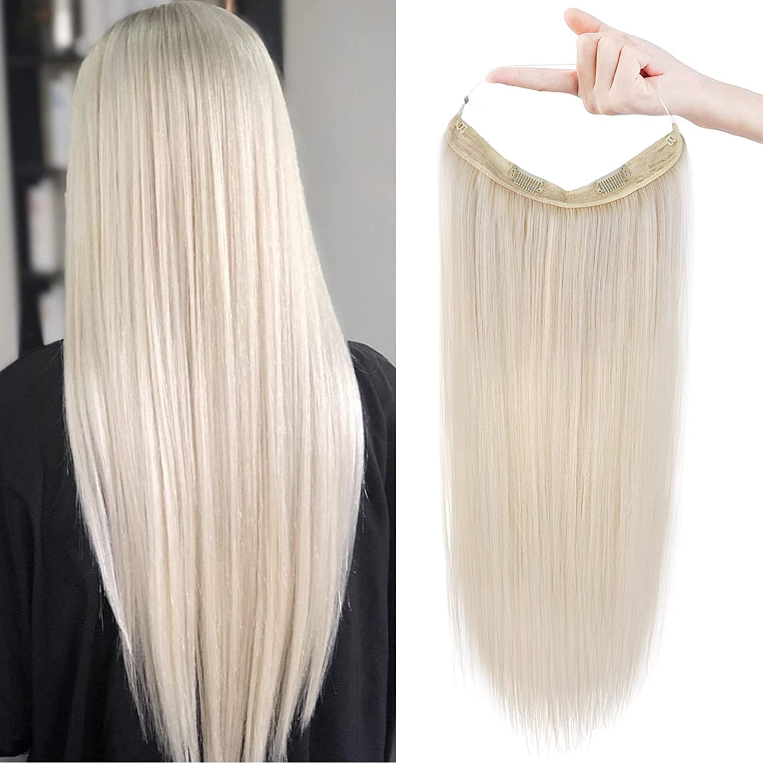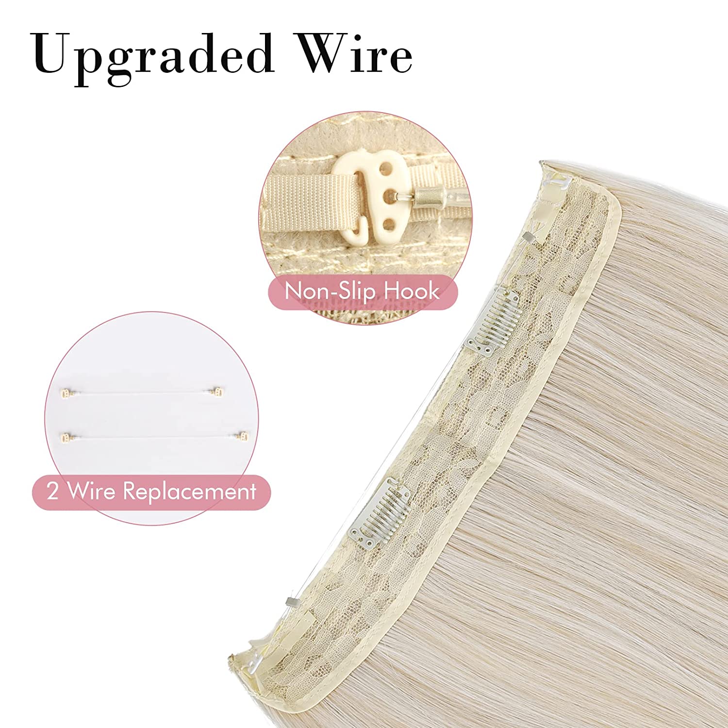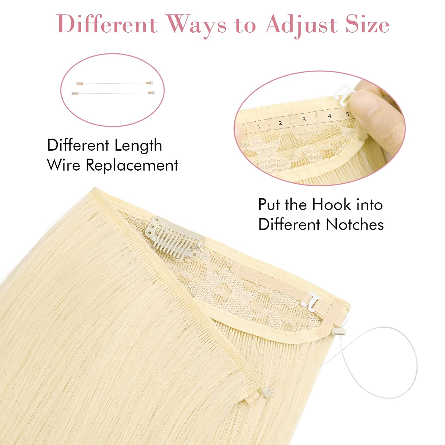 Invisible Wire Hair Extensions With Transparent Headband Adjustable Size Removable Secure Clips In Straight Secret Hairpiece For Women (12 Inch (pack Of 1), Cool Blonde)